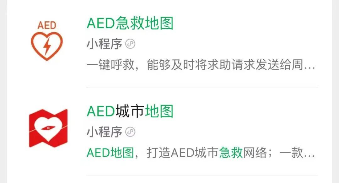 3. 微信小程序:搜索“AED急救地图”“AED城市地图”等相关小程序,无需下载,直接定位就能查询附近AED,部分小程序还能显示设备具体存放位置和服务时间。