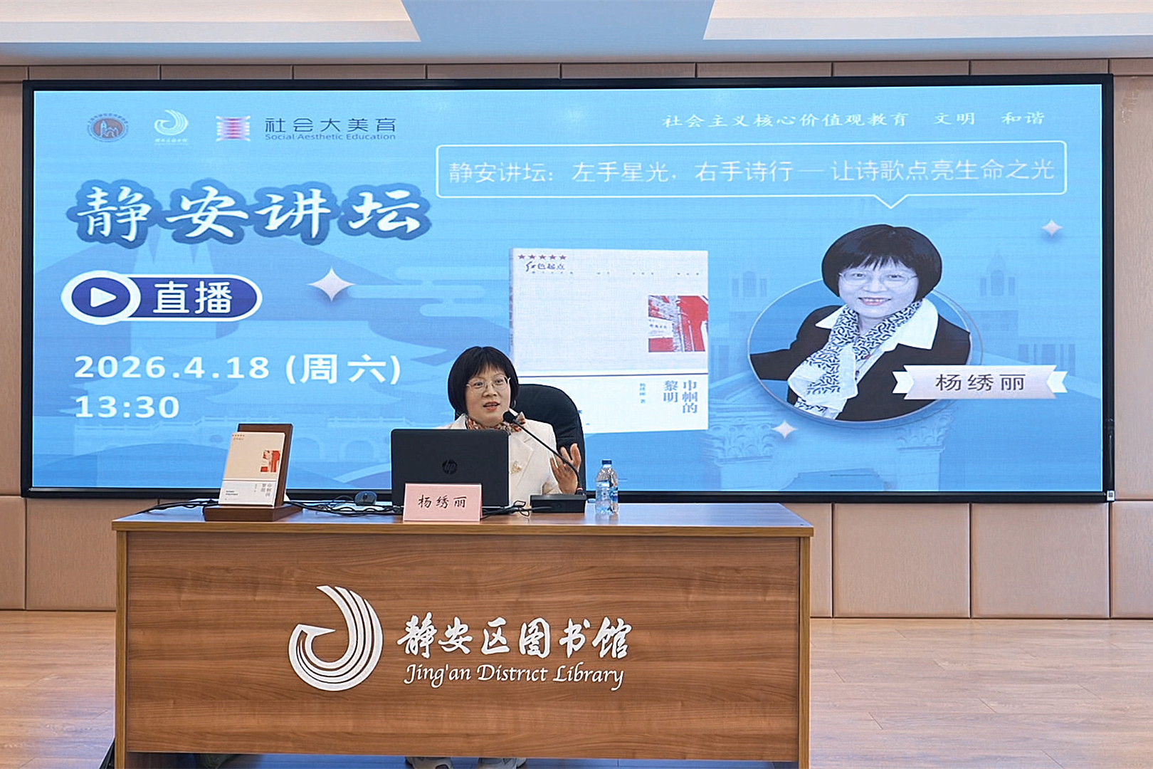 四月春光正好,诗意已悄然绽放。4月18日,“静安讲坛”特邀作家、诗人杨绣丽以“左手星光,右手诗行——用诗歌点亮生命之光”为主题,带来一场精彩的诗歌讲座。