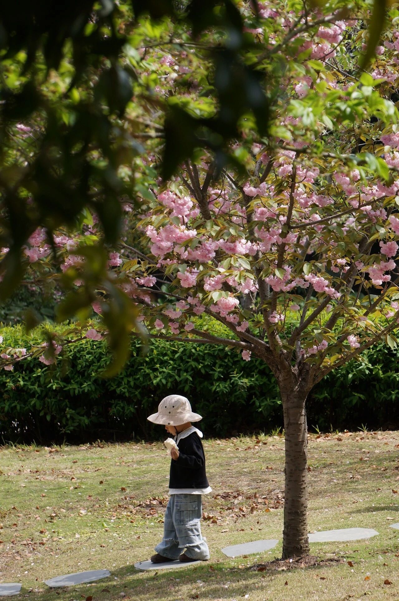 我是樱花,住在水生园。四月的风一吹,我就忍不住抖落粉嫩的花瓣,铺成一条软萌的小路,送给你。