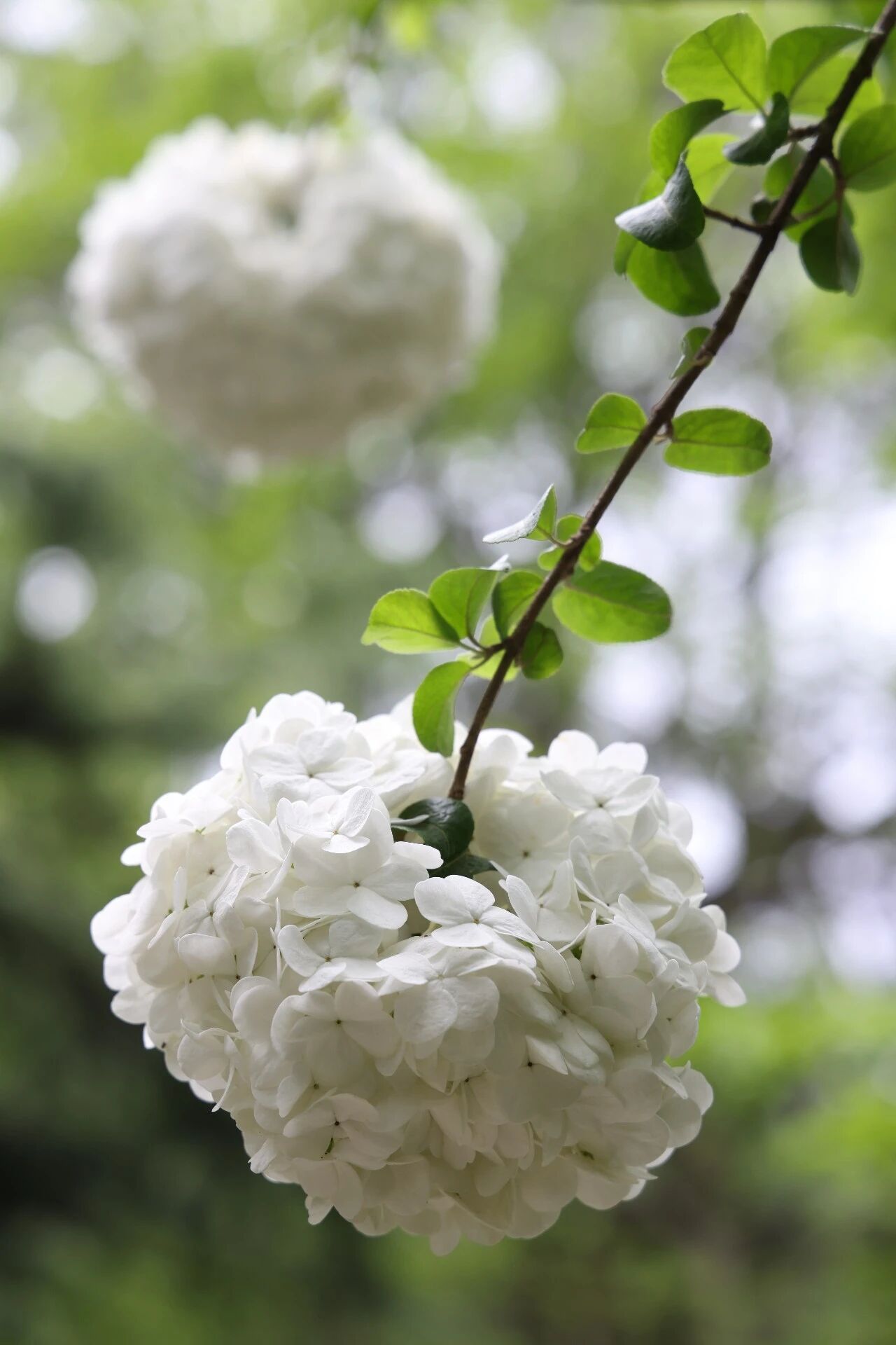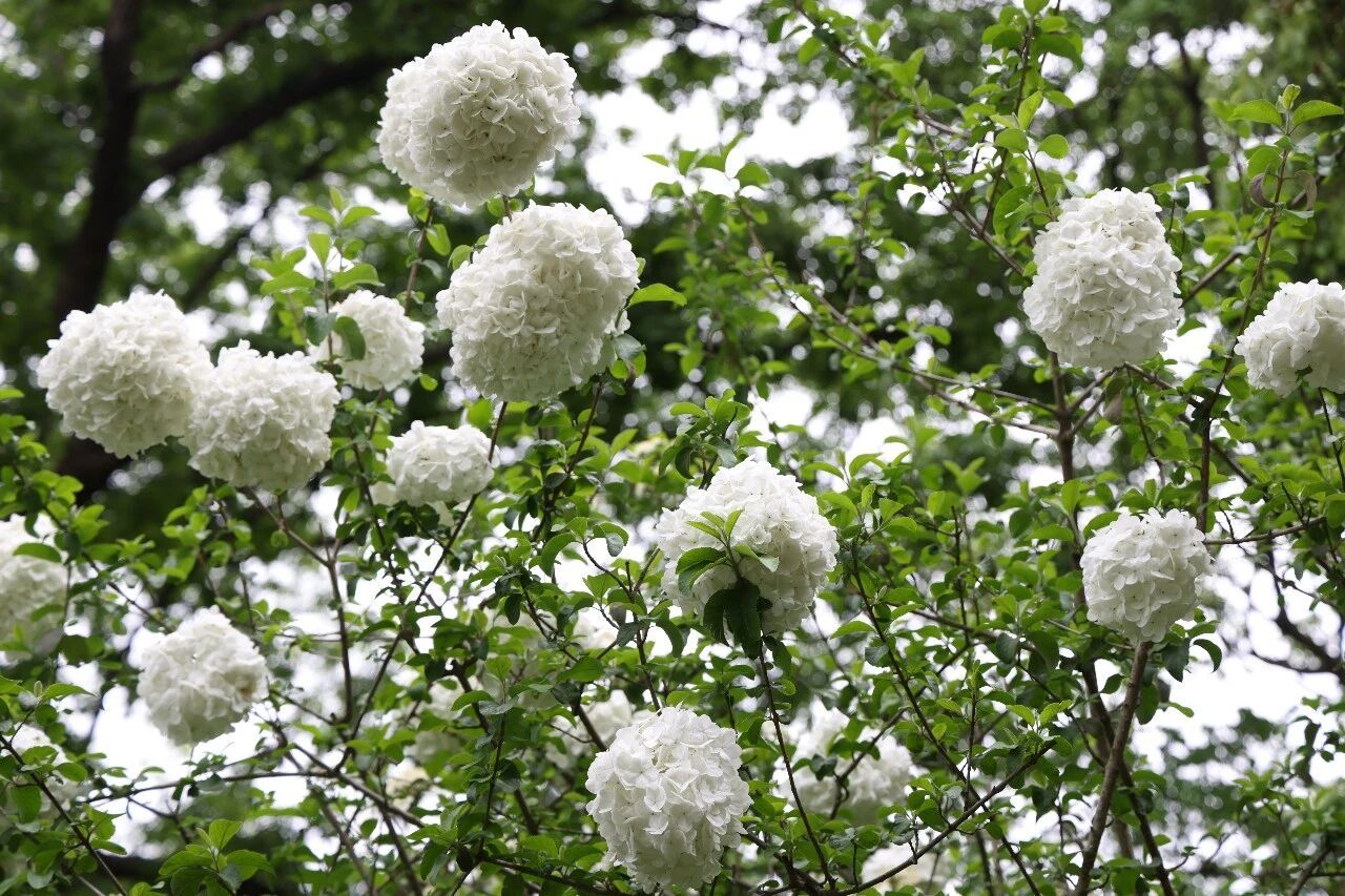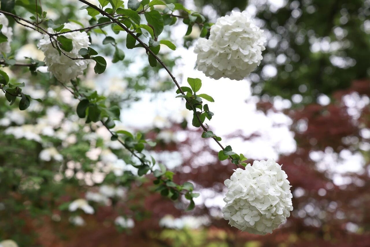 我是木绣球,住在红园。最近迎来了我的盛花期,你们看——莹白的花团在翠绿枝叶间绽放,趁我还开得圆满,快来找我玩~