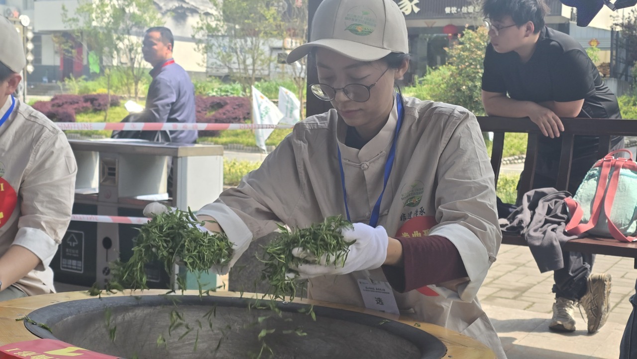 02赛事现场展示六安瓜片、黄山毛峰等四大名茶手工炒制技艺,茶香弥漫,吸引游客沉浸式体验茶文化魅力。