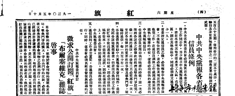 中共中央党报委员会制定的《中共中央党报各省通信员条例》(上海市档案馆藏)