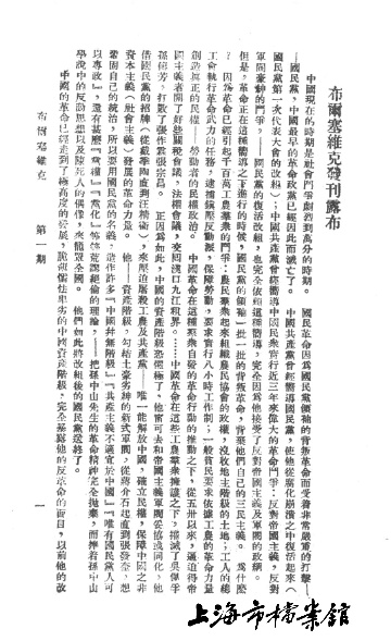 《布尔塞维克》第一期封面(上海市档案馆藏)