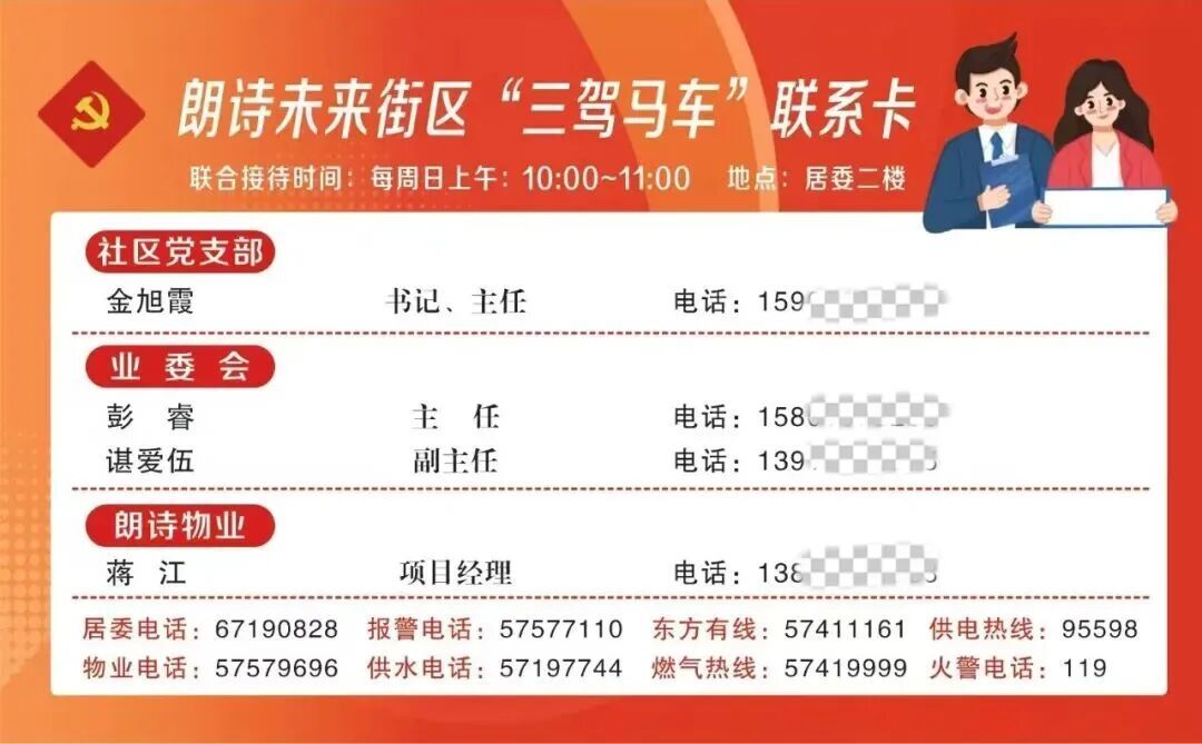 全程公开沟通。方案形成后,一场覆盖全社区的沟通行动随即展开。社区干部、业委会成员、党员志愿者组成宣讲小组,设立线下答疑点位,制作“调价方案明白卡”,线上微信群实时回应疑问。党支部还制作了“金汇一家人·您的贴心人”升级版联系卡,公开居委会、业委会、物业负责人联系方式,承诺“24小时在线,全天候响应”。