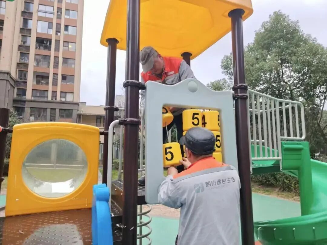曾经的儿童游乐区,设施老化、沙坑失修、地坪开裂,孩子们玩耍时家长总是提心吊胆。2025年7月,党支部通过联席会议确定改造方案,联合巡查队伍全程跟踪施工,党员志愿者成立监督小组。改造完成后,新增游乐设施6组、智能照明灯5盏等。居民王女士感慨:“现在家门口就是孩子的乐园。”
