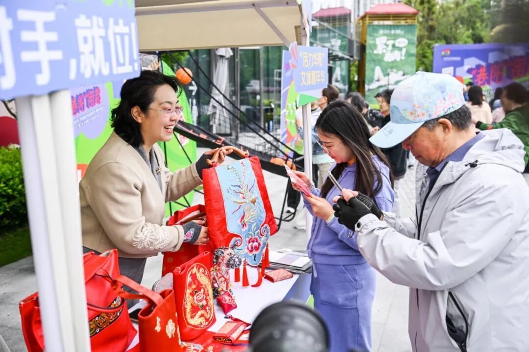 另一边,非遗剪纸、甜蜜糖画等文创体验摊位同样人气满满。精致的剪纸作品、香甜的传统糖画深受大小朋友喜爱,大家一边体验传统文化,一边交流互动,拿着文创物品,满是满足。不少市民一边运动打卡,一边感受非遗魅力,惬意又欢乐。