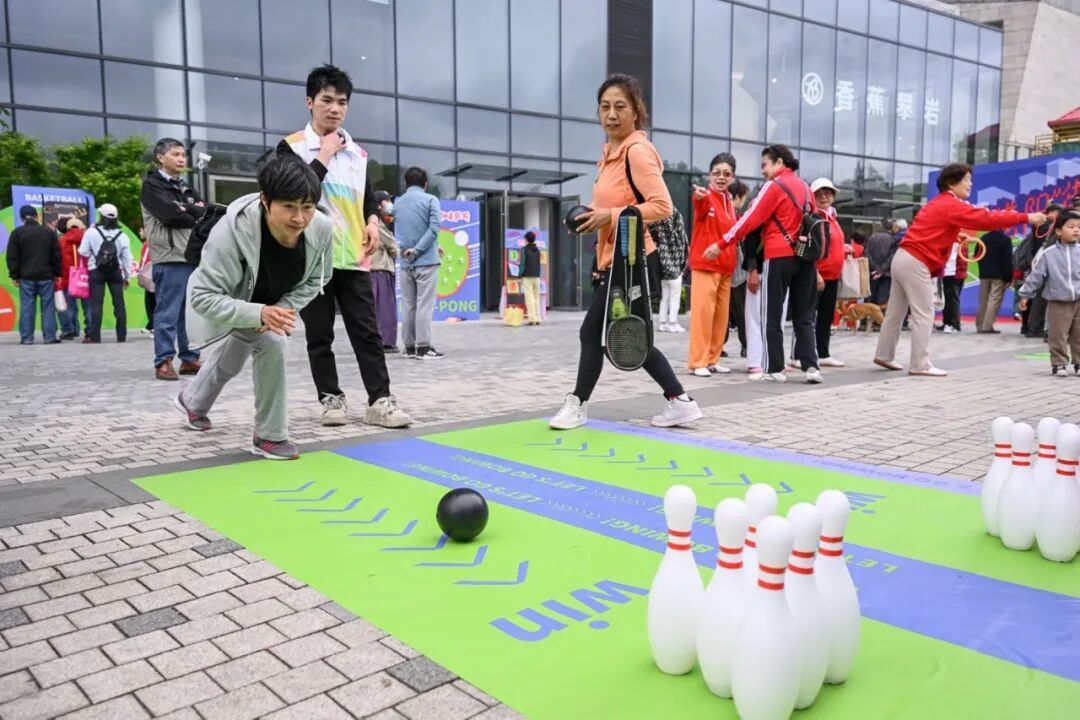 文体嘉年华市集一经开放,立刻被热情的市民“包围”。幸运投壶、匹克球九宫格、套圈夺宝等趣味运动点位前,老人凝神瞄准、孩子蹦跳尝试,年轻人互相加油鼓劲,大家踊跃参与、乐在其中。
