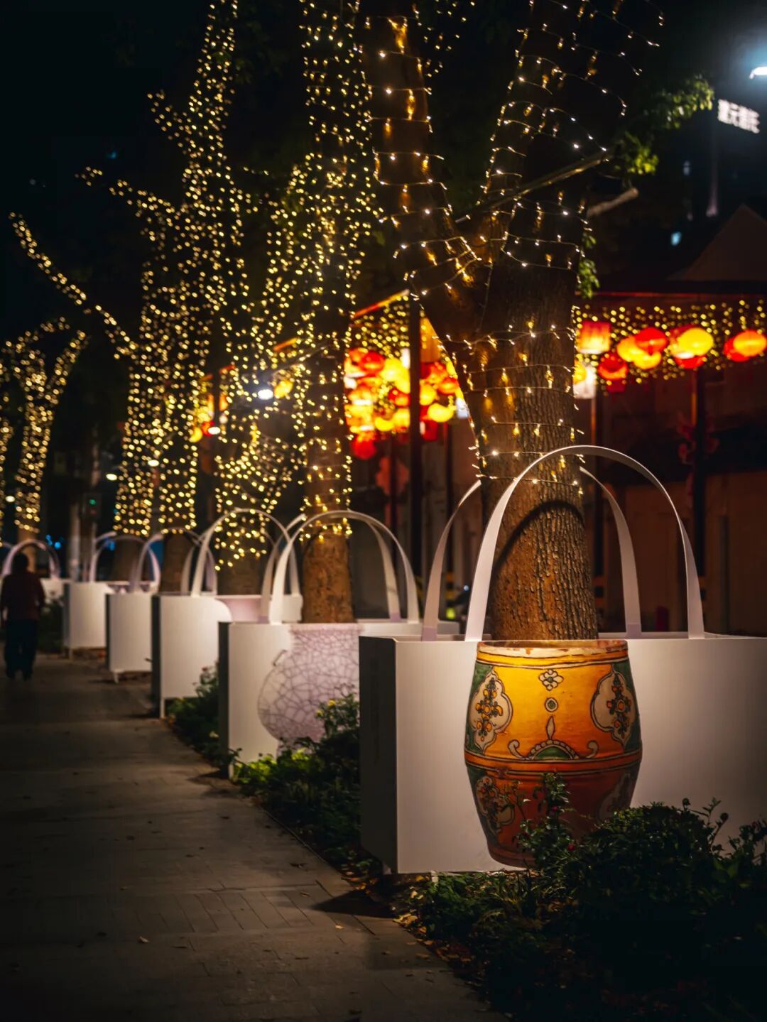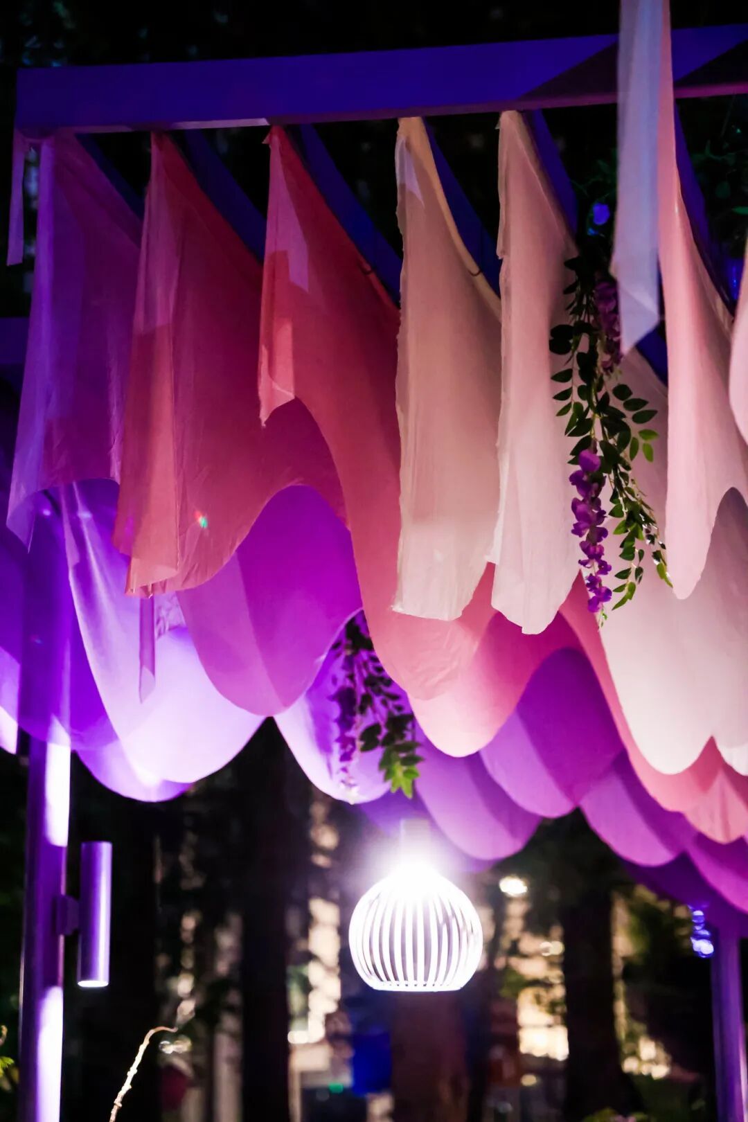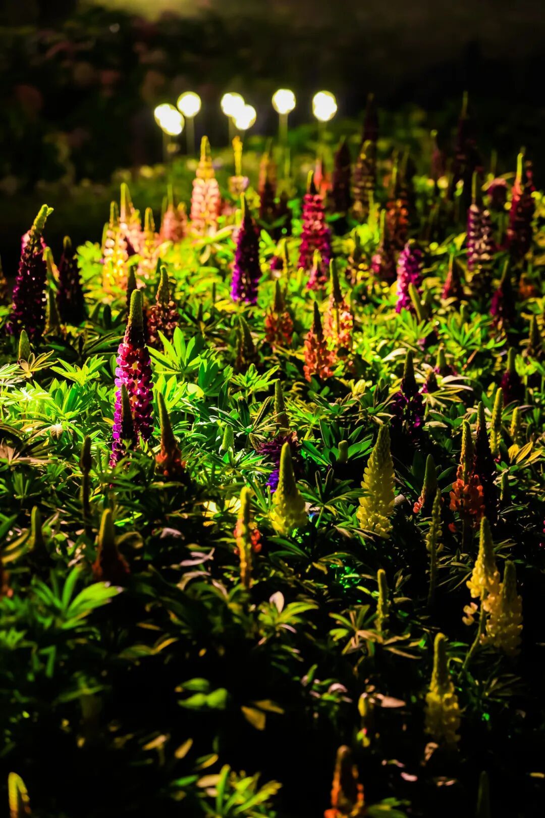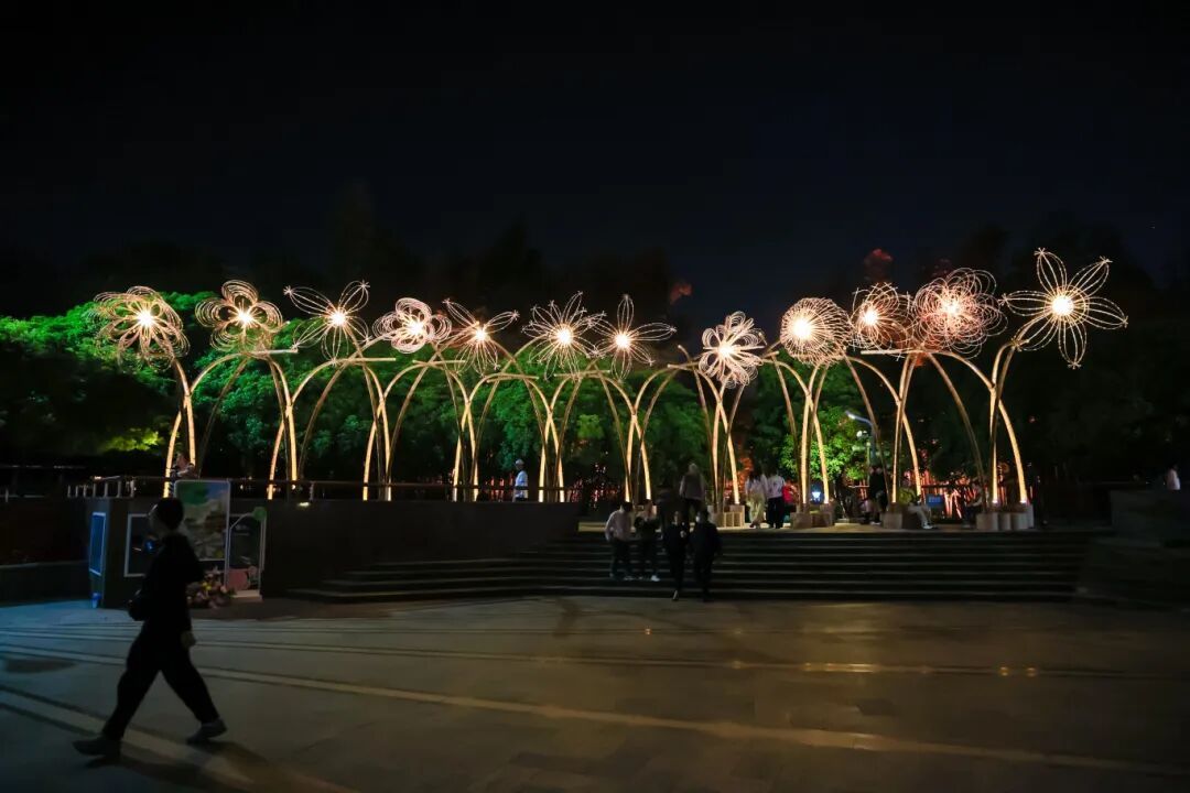 灯光与花影交织