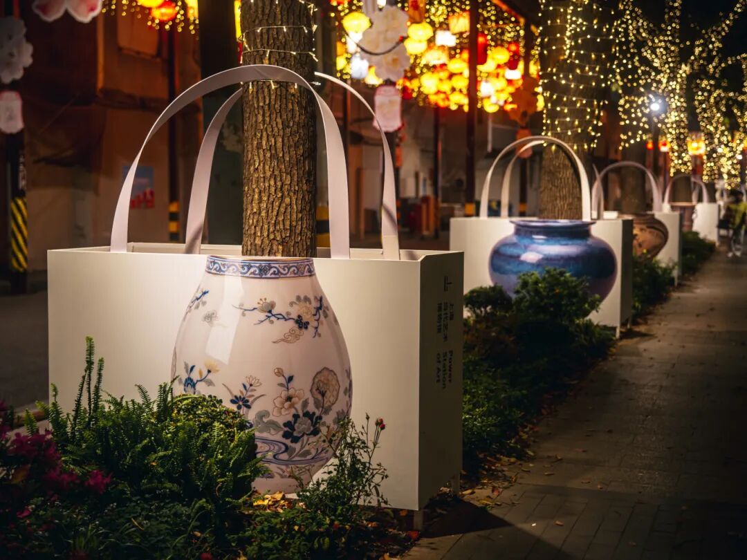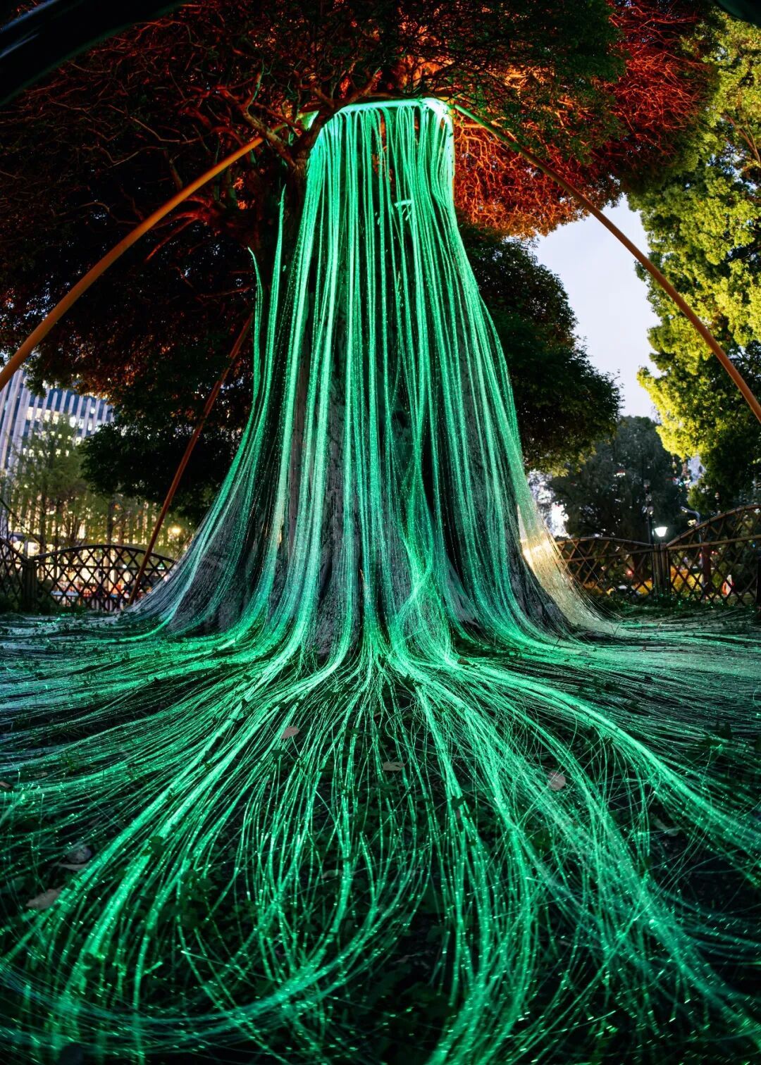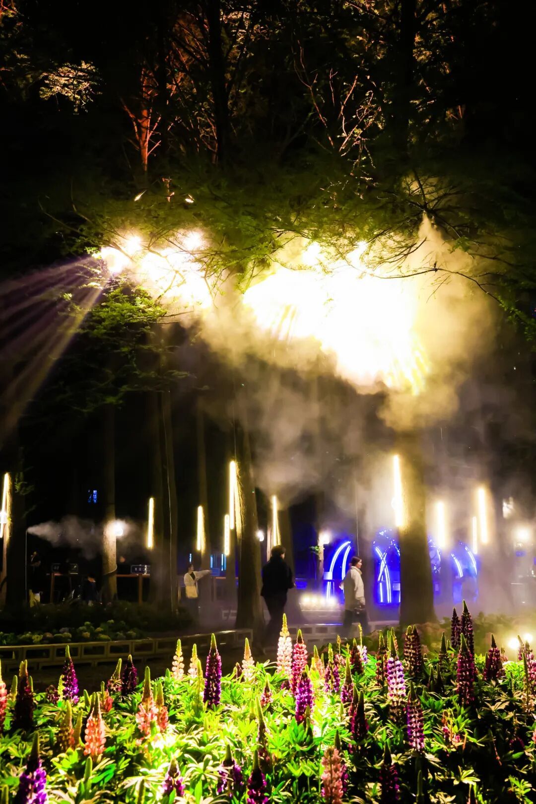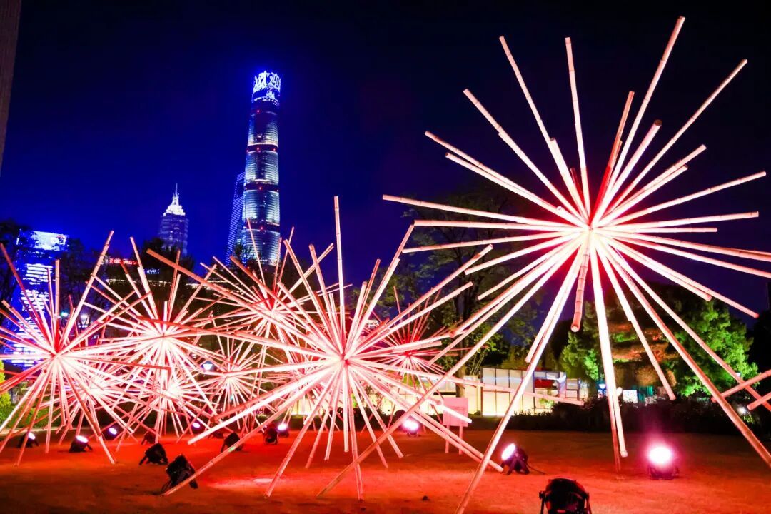 灯光与花影交织