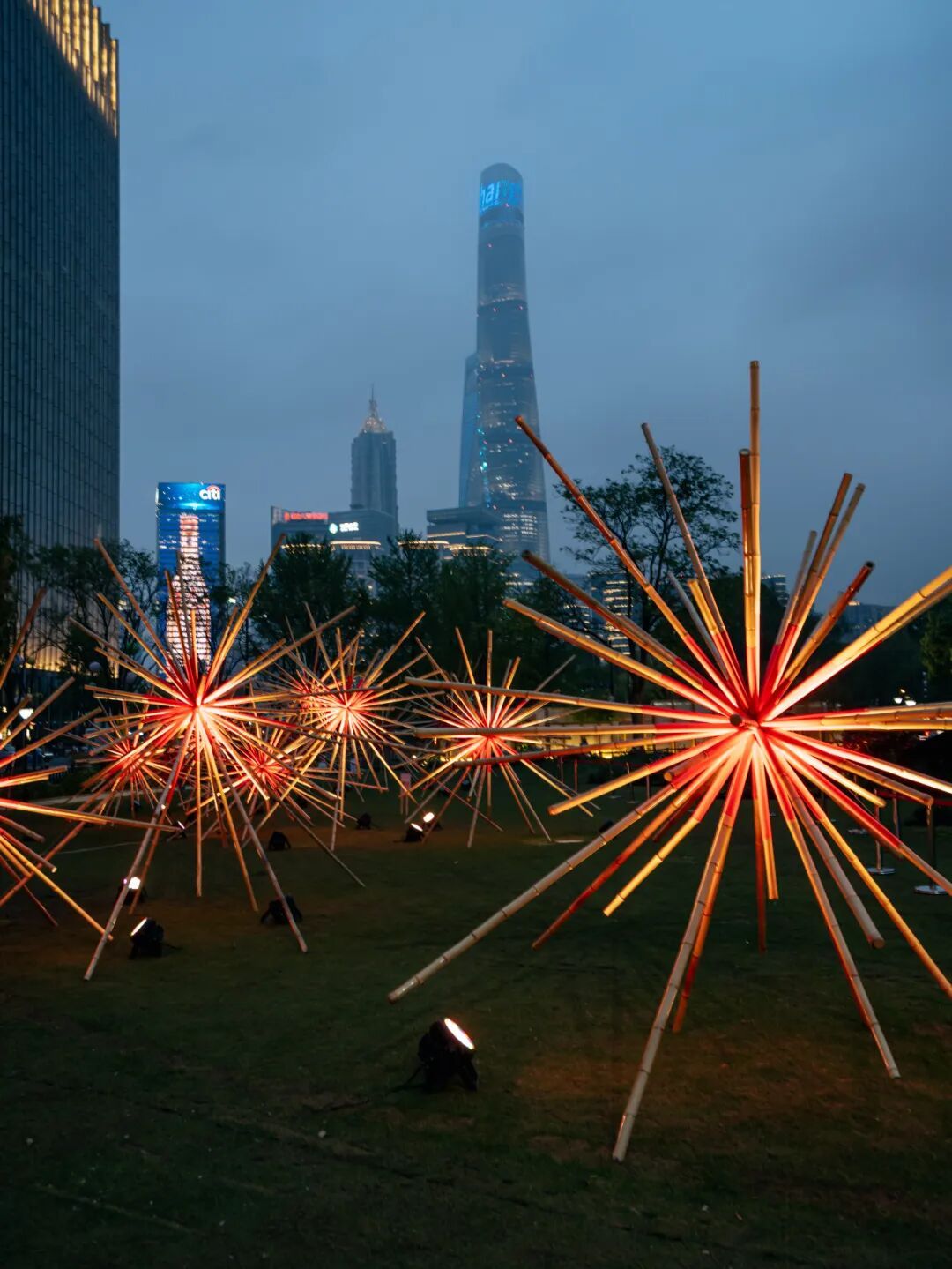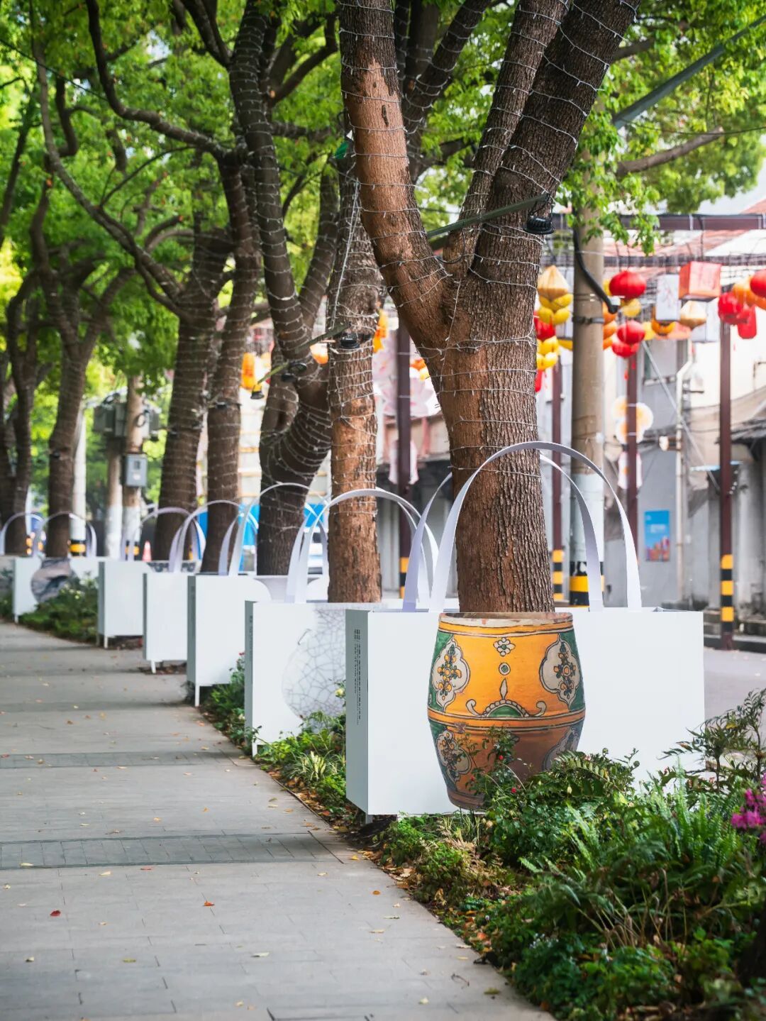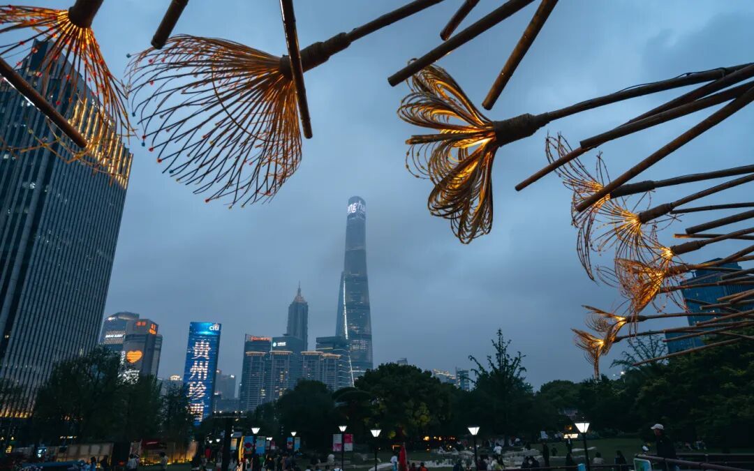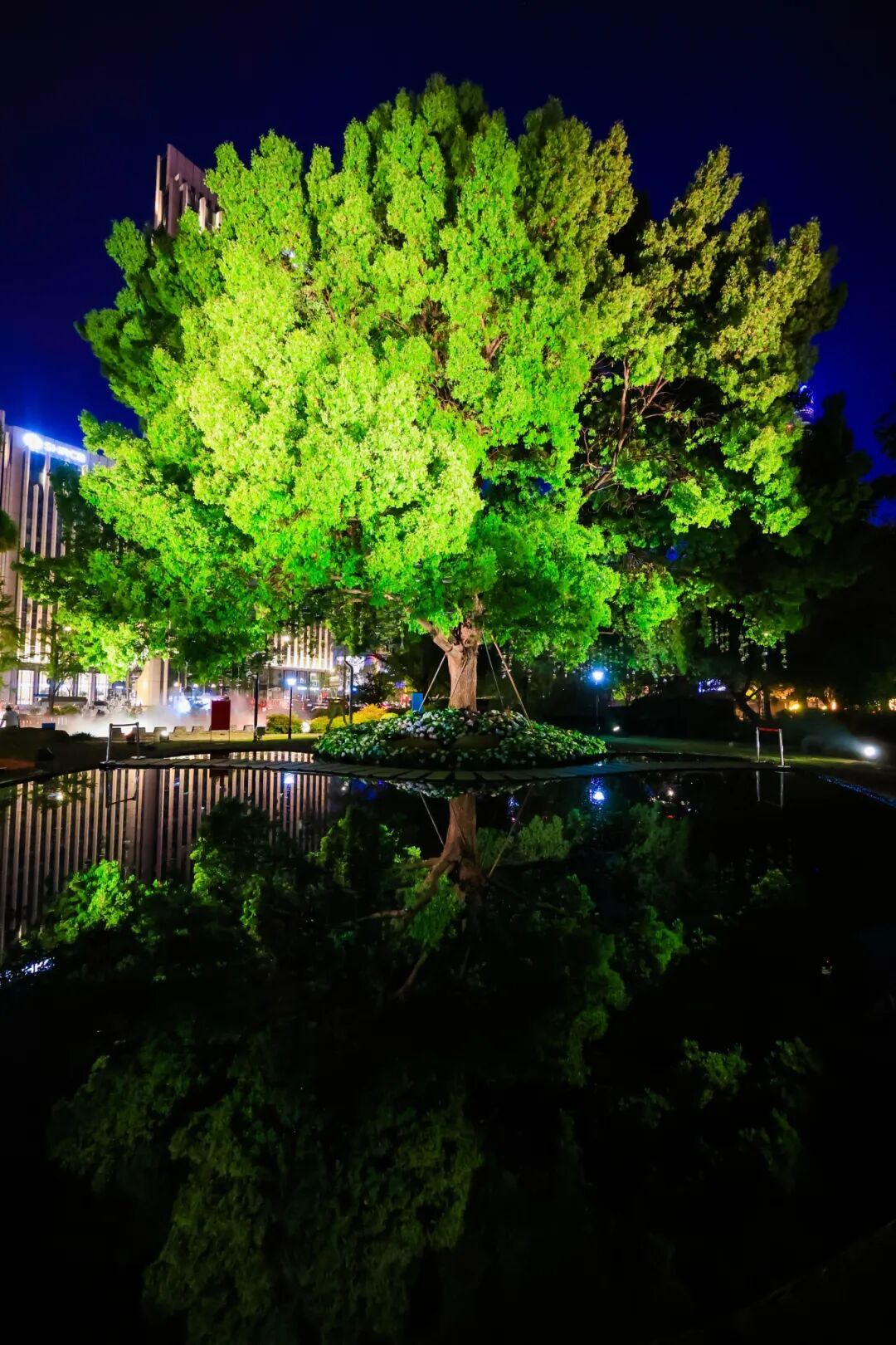 灯光与花影交织