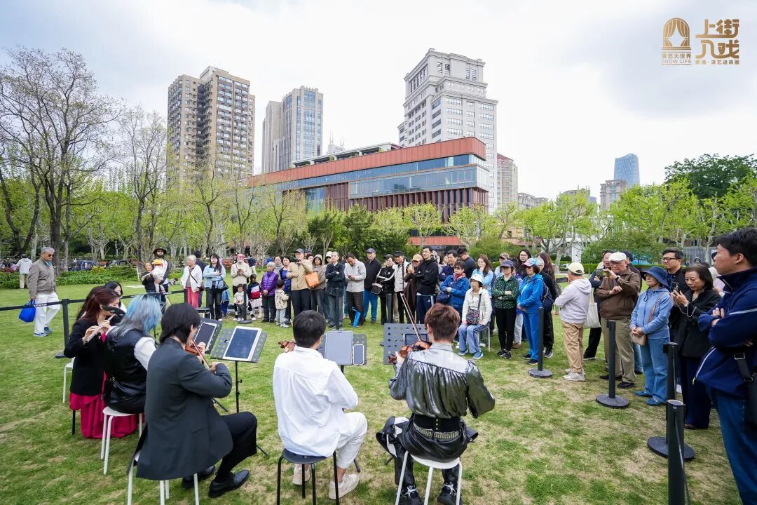 耳间有惊喜,花海伴乐章。4月18日-19日,“上街入戏”四场音乐演奏轮番上演,MMCG整活乐团、演奏家Mickey顧、冰心大提琴社倾情献艺,《蓝色多瑙河》《梦碎大道》等经典曲目与音乐剧串烧交织,悠扬旋律漫过花海,让赏花时光更具格调,沉浸式感受城市文化活力。