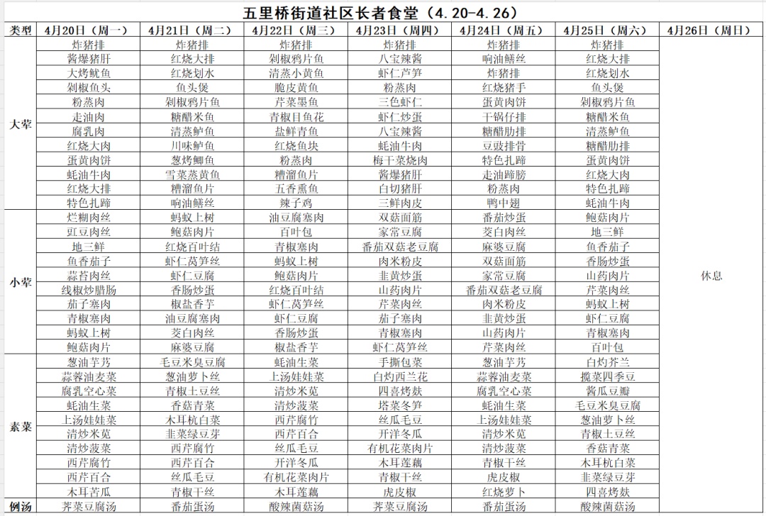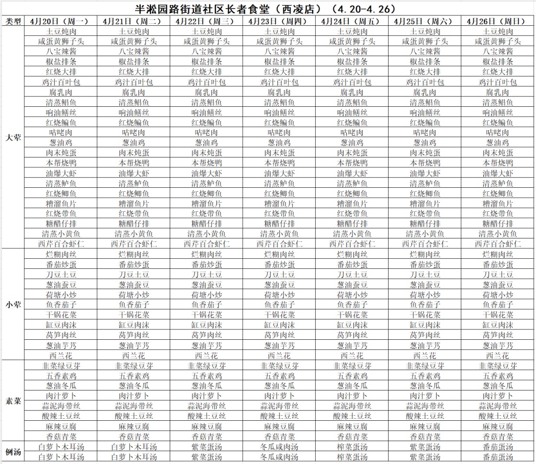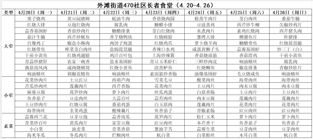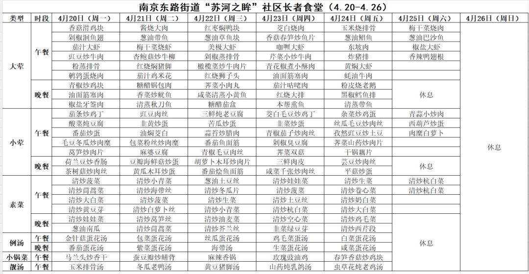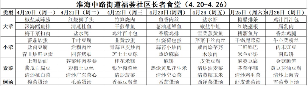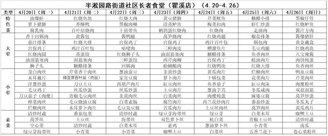 黄浦区社区长者食堂一周菜单(4.20—4.26)
