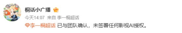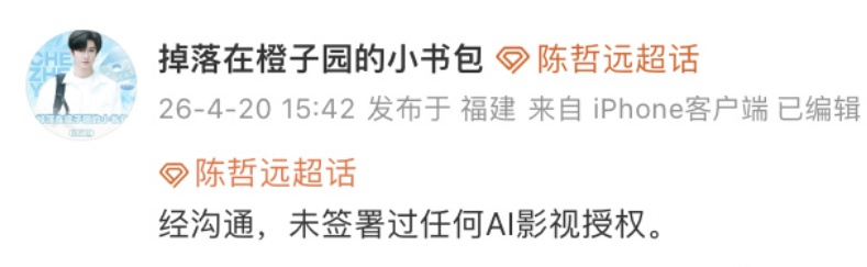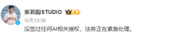 #张若昀否认AI授权# 等话题
