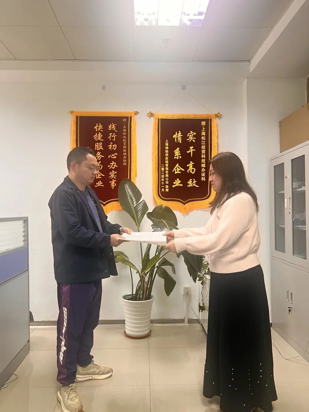 “原来以为要自己跑去市里办证,没想到乐民公司办证科工作人员免费提供‘一站式’服务,我们只需要提交材料,3个工作日内就领到了营业执照,高效!”拿到崭新的营业执照后,落户松江经开区的上海松江国和经彩智造创业投资合伙企业相关负责人不禁竖起了大拇指。 记者了解到,今年以来,乐民公司办证科进一步提升服务能级,创新开拓市市场监管局业务中的代办服务,受到企业好评。这也是乐民公司优化营商环境的一个缩影。“无事不扰、有事必应”,公司办证科通过机制创新与精准攻坚,用“暖举措”化解“冷规则”,为企业发展提供有力支持。