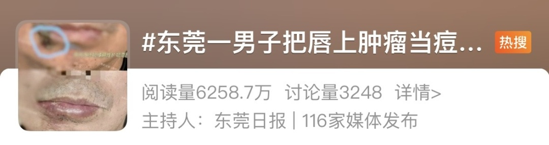 “东莞一男子把唇上肿瘤当痘痘挤了8年”