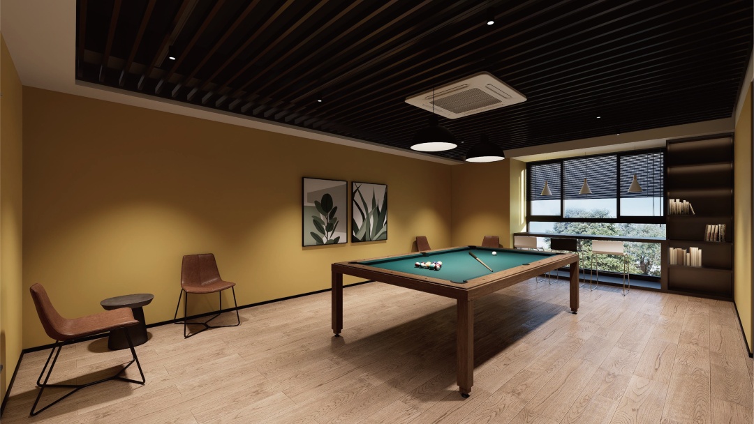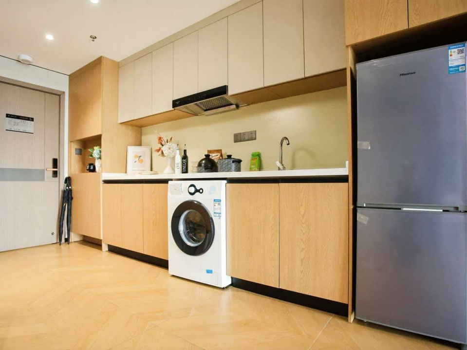 项目采用精装交付标准,房间内油烟机、洗衣机、冰箱、热水器等品牌家电配置齐全,真正实现“拎包入住”,同时为租户配备了阅览室、台球室、健身房、自助洗衣房等多功能区域,满足租客阅读学习、社交休闲、健身锻炼等多元需求。