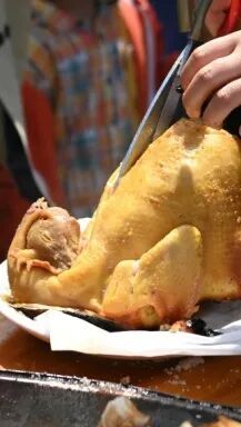 在第二道盐焗系列菜的比拼中,“辣翻全场三人组”走出了与其他队伍截然不同的路线。不同于多数队伍选择盐焗各类海鲜的常规操作,他们大胆挑战更费时、更考验火候的盐焗鸡。