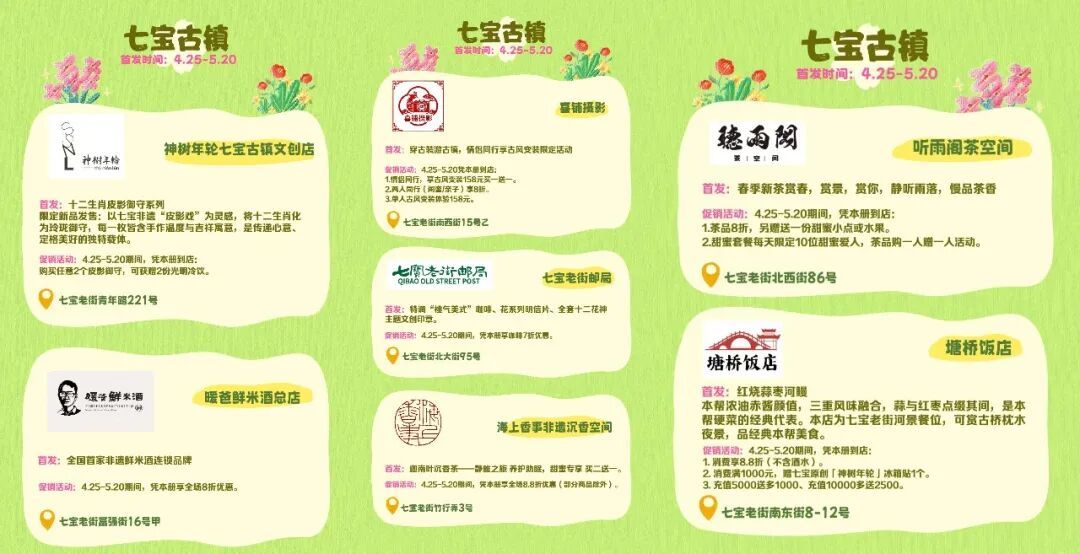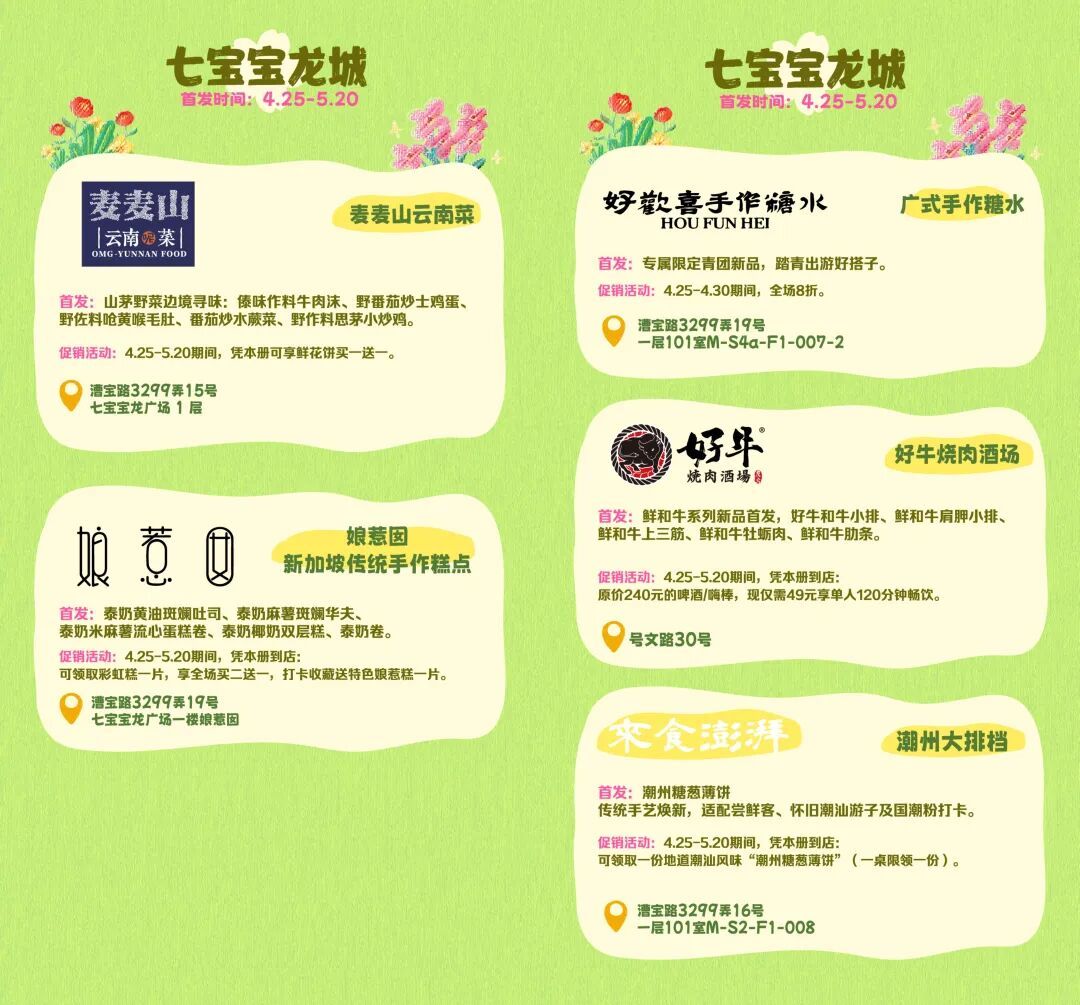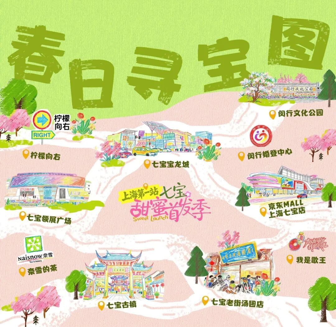 从七宝老街的“八宝聚福汤圆”到宝龙城的河畔露营街区,小小一张图可谓“吃喝玩乐一应俱全”(此前报道《福利处处有,活动花样多!七宝甜蜜首发季全攻略来了!》)。现在,让我们打开这份《春日寻宝图》,看看都有哪些“甜蜜首发”→