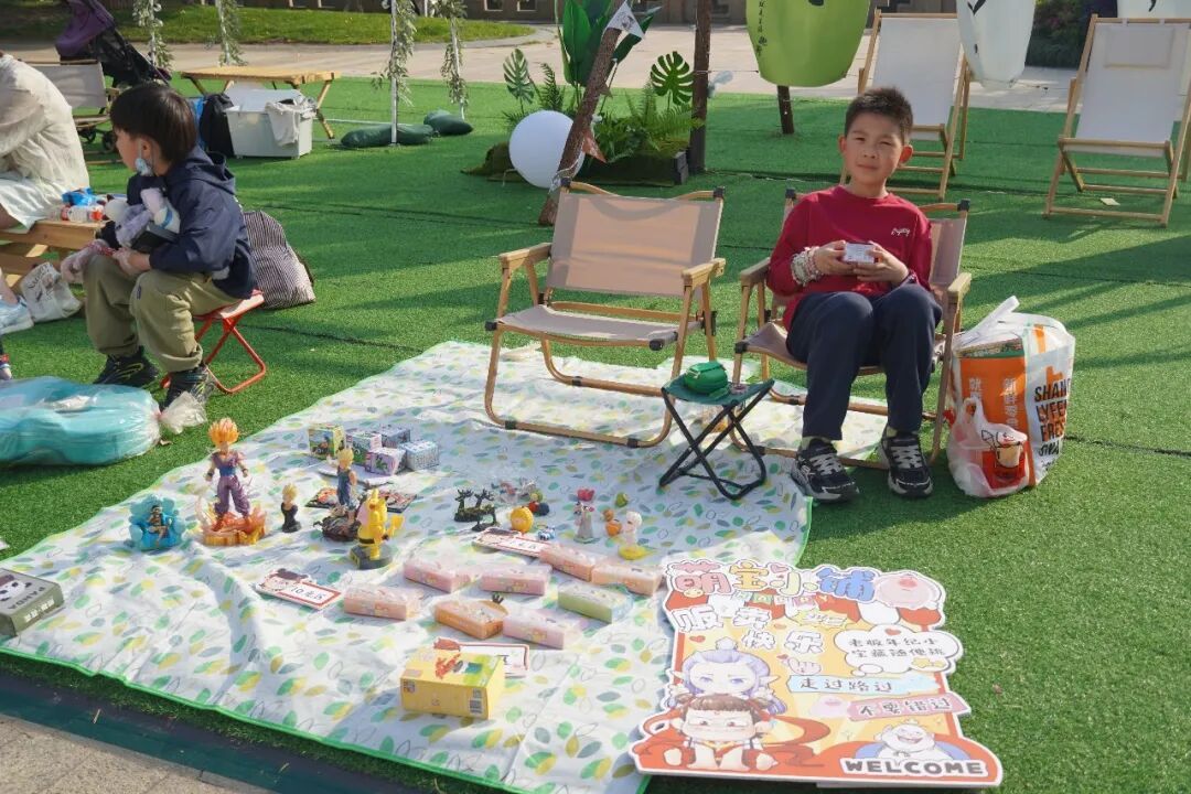 每个摊位都有自己的特色“商品”,有的放着一沓绘本,许女士的摊位则多是小朋友的玩具、盲盒。“有些闲置在家的玩具,想着会不会有其他小朋友喜欢,就带来了循环市集。”许女士表示,带着小朋友过来,他可以通过售卖物品锻炼交流能力,也能遇到很多同龄的小伙伴。