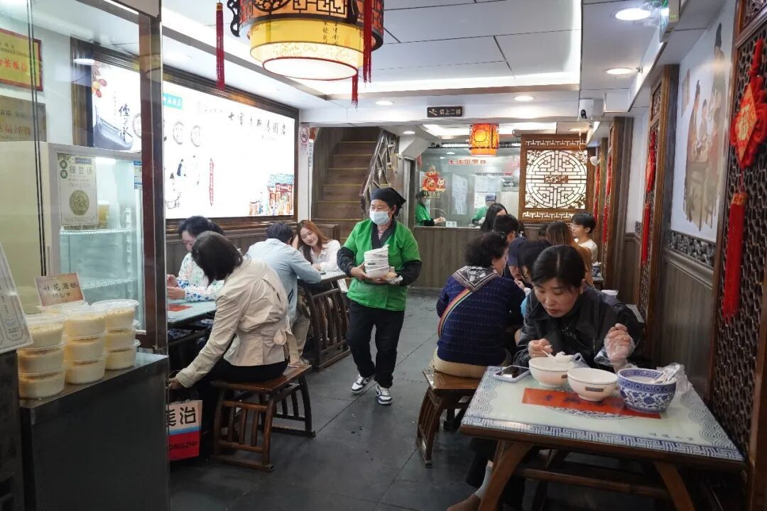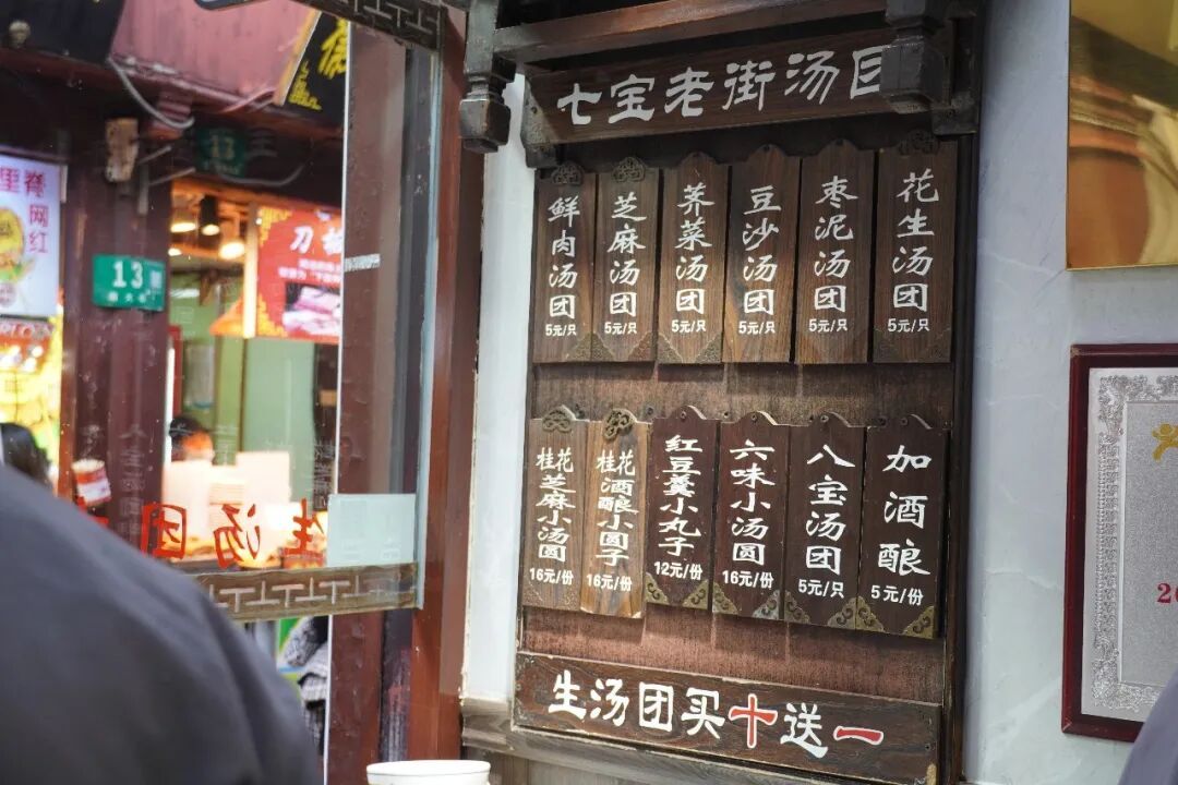 丸子很糯,红豆看着粒粒分明,其实已经入口即化,而且口味比较清淡,是养生健康的口感。”郑女士一家来自台湾,每个人面前都摆着一碗汤团,有豆沙、花生、枣泥等不同口味。他们将七宝古镇选作行程中的重要一站,“这次会在上海旅行四天,既想感受它都市现代的一面,也期待来古色古香的老街逛一逛、尝尝美食”。