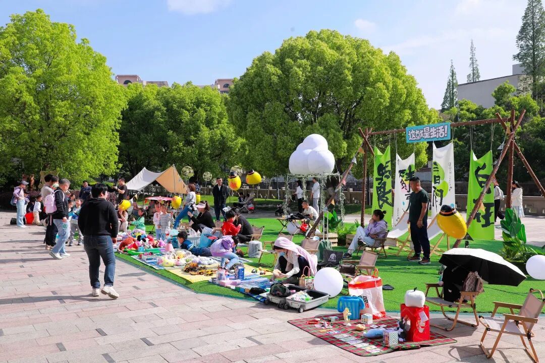 喝着饮料,你是否想找个地方坐一坐、享受一下美好春光?在七宝宝龙城,河畔露营街区免费对外开放,沿河独栋建筑群变身都市露营地,在漕宝路主入口广场还设有“步步生花”春季美陈展与限时花瓣雨。