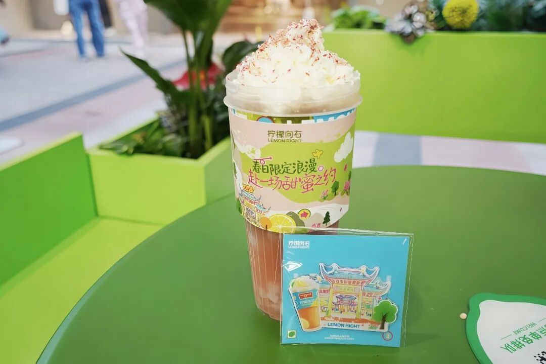 这股甜蜜之风同样吹到了七宝商圈。在七宝宝龙城店和七宝领展一店,“柠檬向右”推出了两款七宝限定的夏日特调新品,雪顶发财芭乐双响炮柠檬茶雪顶多肉葡萄白柚柠檬茶