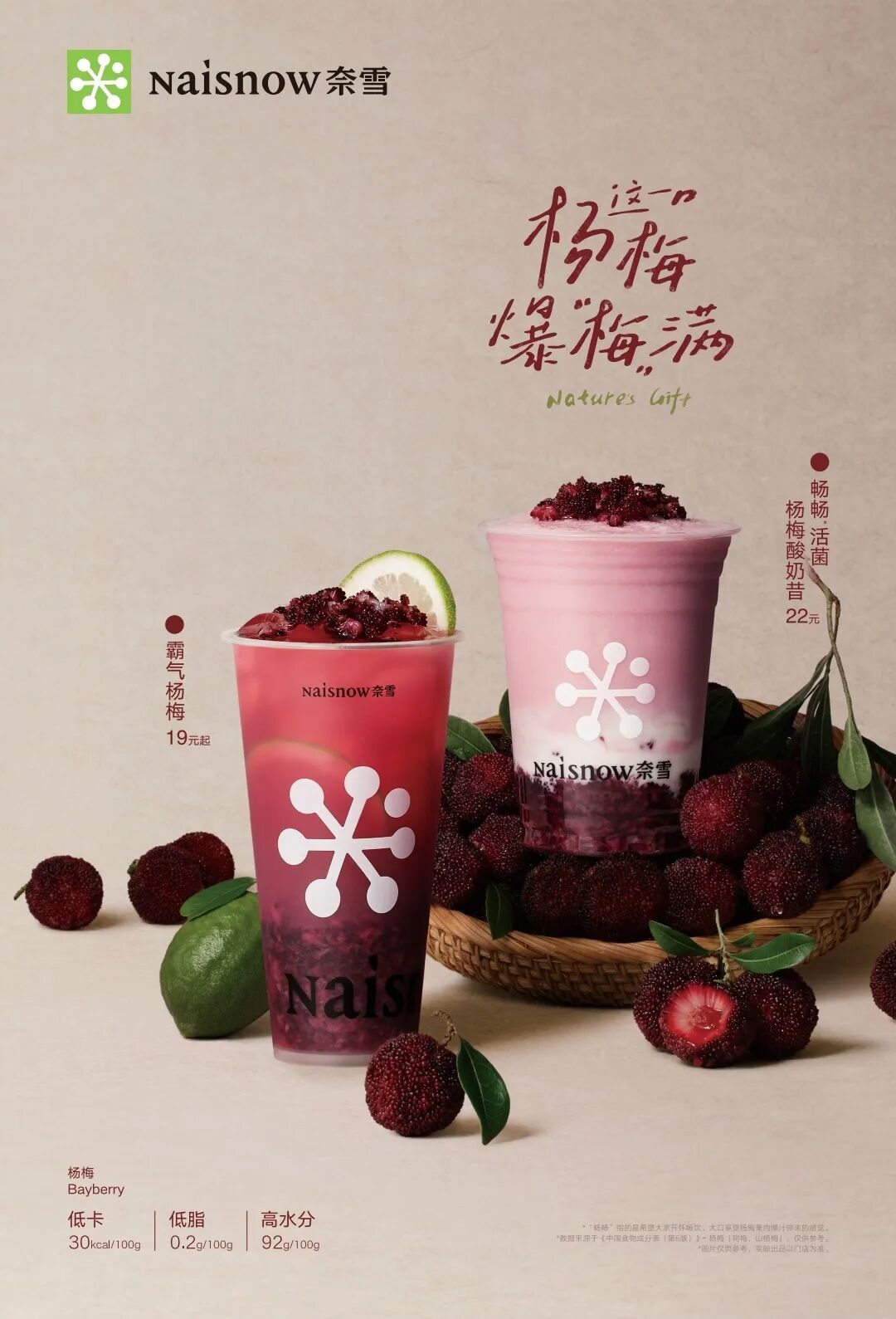 “往年杨梅饮品以纯果茶为主,今年新增的杨梅酸奶昔是奈雪又一次全新尝试,融合了鲜果茶的清爽与酸奶的醇厚。”“奈雪的茶”市场部负责人潘畹华说,产品名称也蕴含着美好祝愿:希望消费者在品尝时感到日子鲜活“梅满”,在新的季节事事“扬眉吐气”。