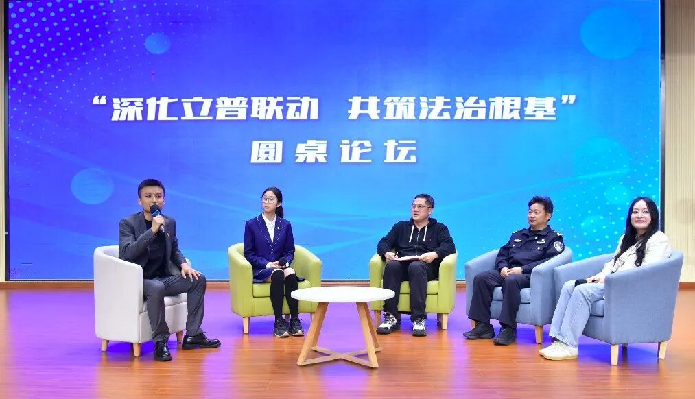 随后举行的“深化立普联动 共筑法治根基”小论坛环节中,司法所、派出所、学生代表与思政教师围坐一堂,围绕“青少年容易踩的法治误区有哪些?”“如何让普法内容更对年轻人‘胃口’?”“学生可以通过哪些渠道参与立法?”等话题展开热烈讨论。