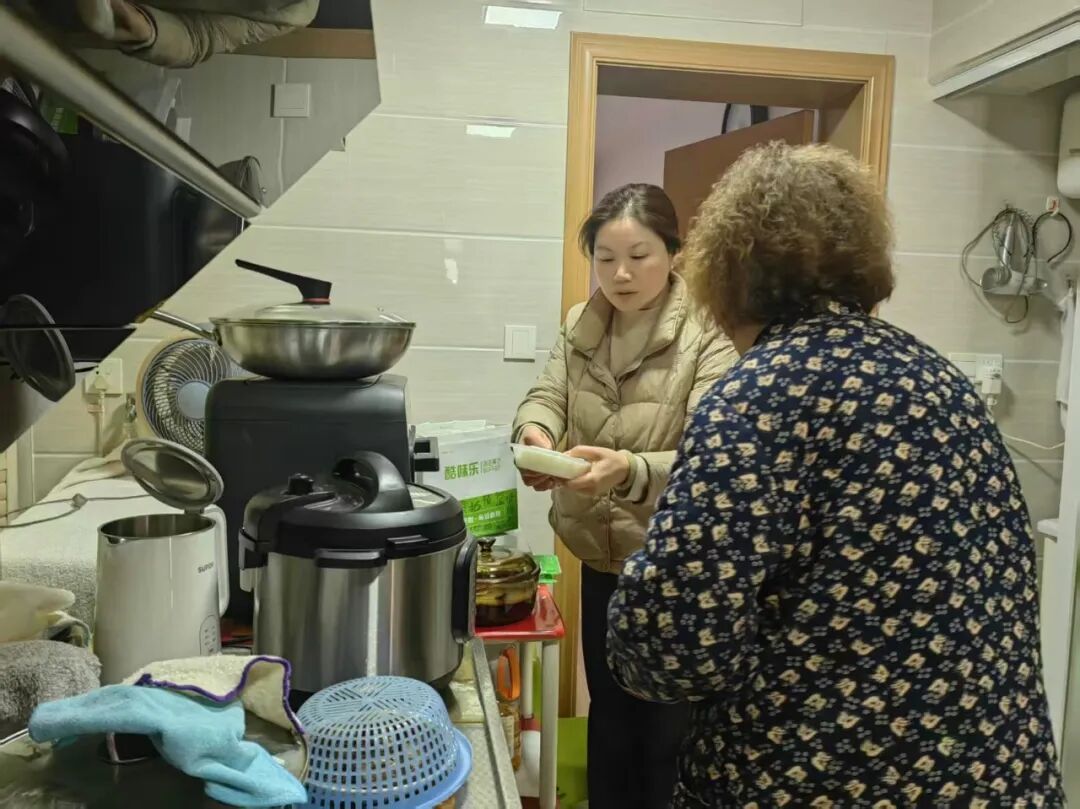 这两面锦旗背后,藏着日复一日的温柔守候。王阿姨患有严重风湿性关节炎,行动极为不便,买菜、配药都成难题。戴春花得知后,主动承担送菜、配药任务,定期上门看望,陪老人聊天解闷。老同事转达王阿姨的心意时说:“子女平时不在身边,总放心不下我,但看到居委会一直这么关心我,他们心里就踏实了。”