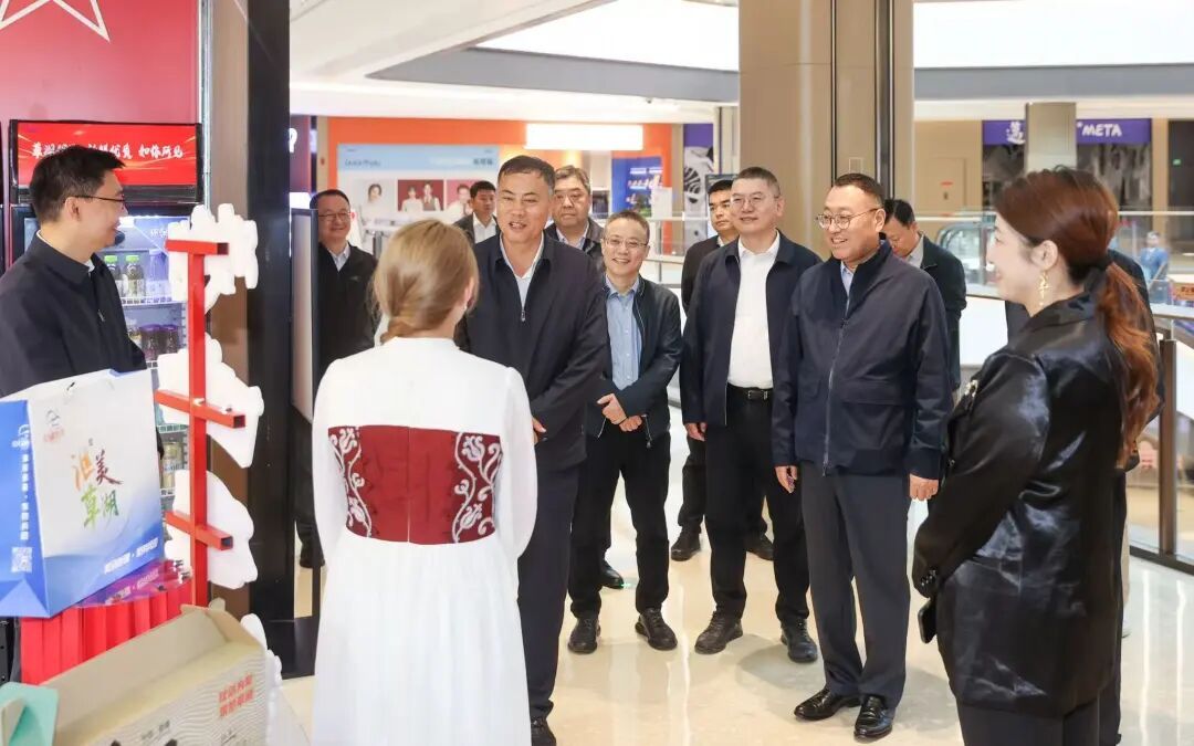 在“草湖汇客厅”,曹立强陪同秦伟一行实地察看点位展销运营情况,逐一察看兵团特色农产品、文旅文创产品展示展销区,详细了解产品品类、消费帮扶成效及平台运营模式,对“草湖汇客厅”搭建沪兵产销对接桥梁、助力草湖优质资源走进上海市场的实践给予肯定。秦伟对徐汇区长期以来给予草湖项目区的大力支持、对援兵干部的辛勤付出表示衷心感谢,双方就深化产业合作、拓展消费帮扶、强化人才交流、提升援建实效等方面深入交流、凝聚共识,进一步明确对口支援方向与重点举措。
