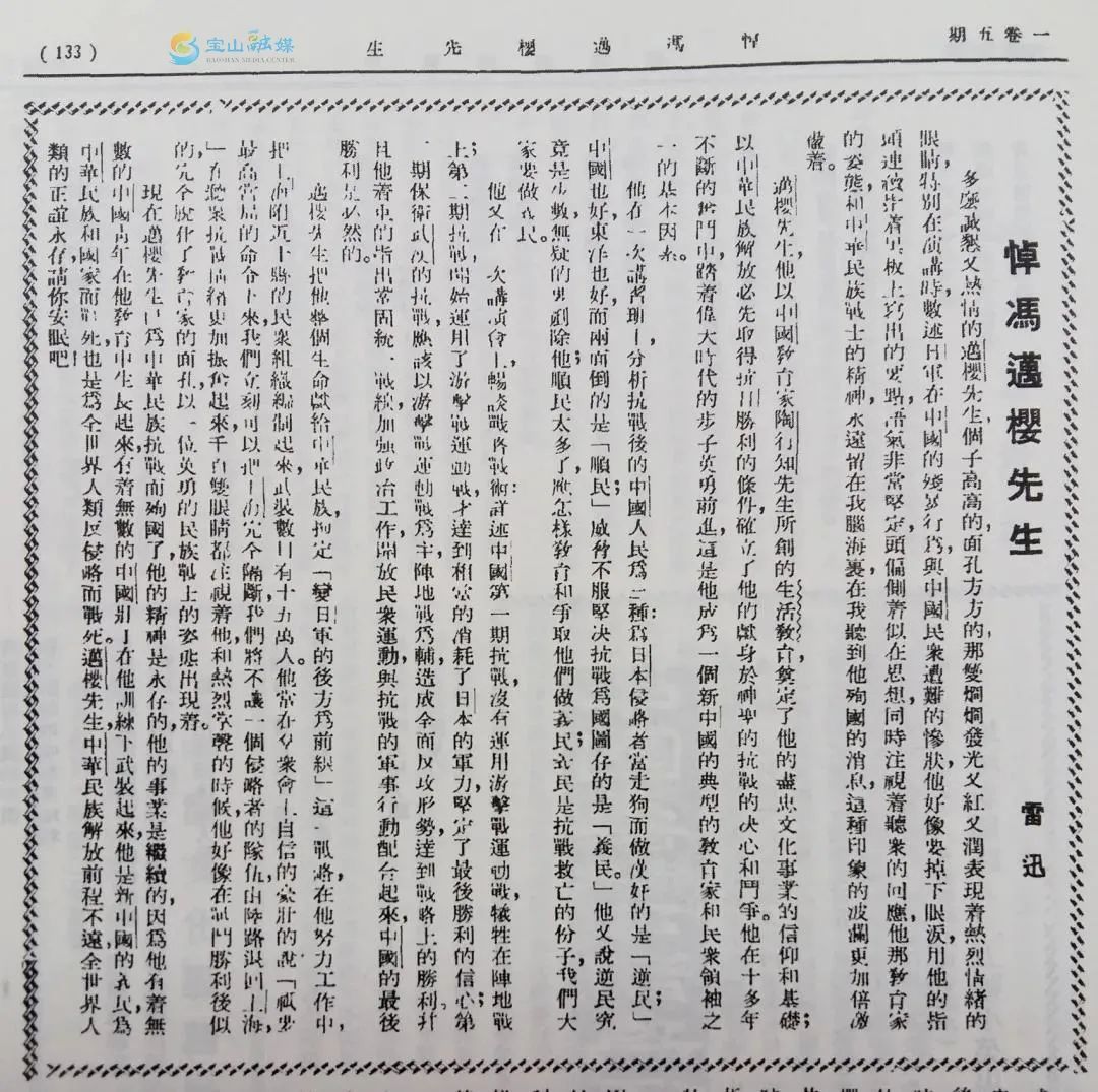 11月的周刊,即刊发了署名“雷迅”的文章:《悼冯迈樱先生》。
