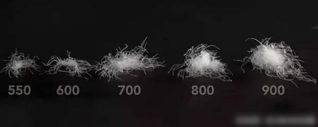 绒朵在羽绒中的质量占比,含绒量对蓬松度的影响比较显著。