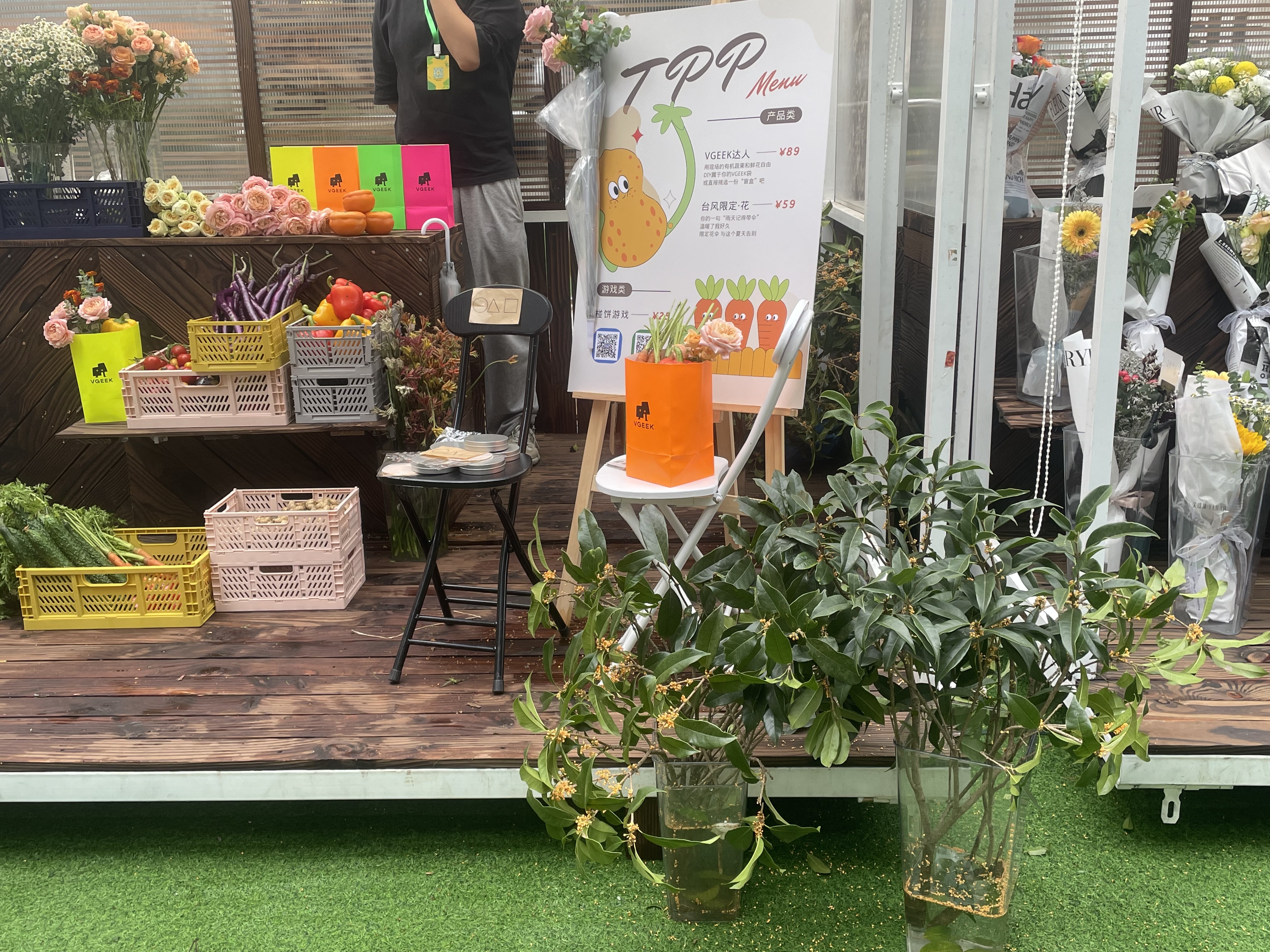 在号称“都市里的天空花园农场”摊位,用一把“真·限定花伞”与这个夏天告别,用一个DIY纸袋“盲盒”就能轻松实现有机蔬果和鲜花自由。