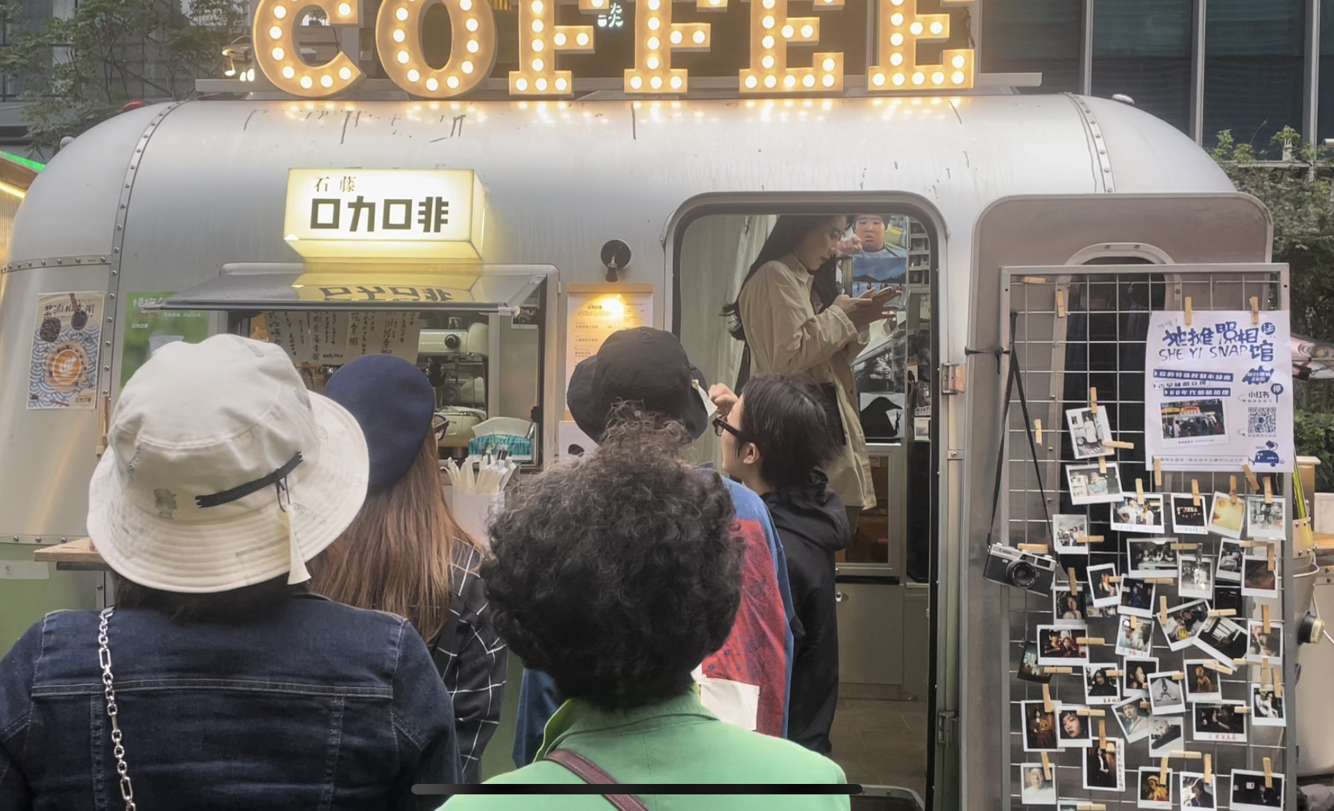 在一辆银白色咖啡车旁边,一家“地摊照相馆”尤为吸睛,用60年代的中画幅相机拍一张古早味的拍立得,吸引了不少摄影爱好者排队打卡。