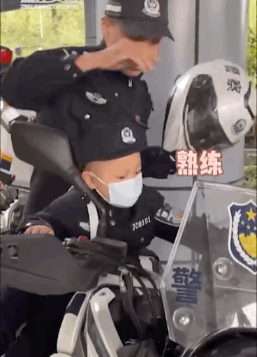 穆穆坐上了警用大摩托车