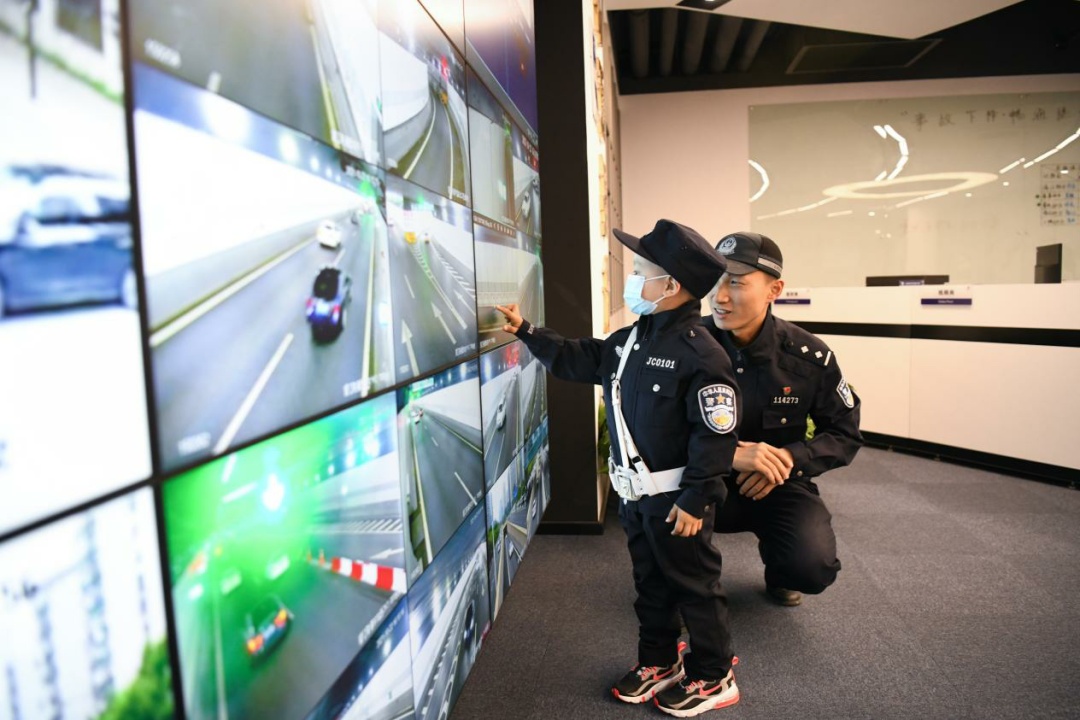穆穆参观了交警数字勤务室和装备室