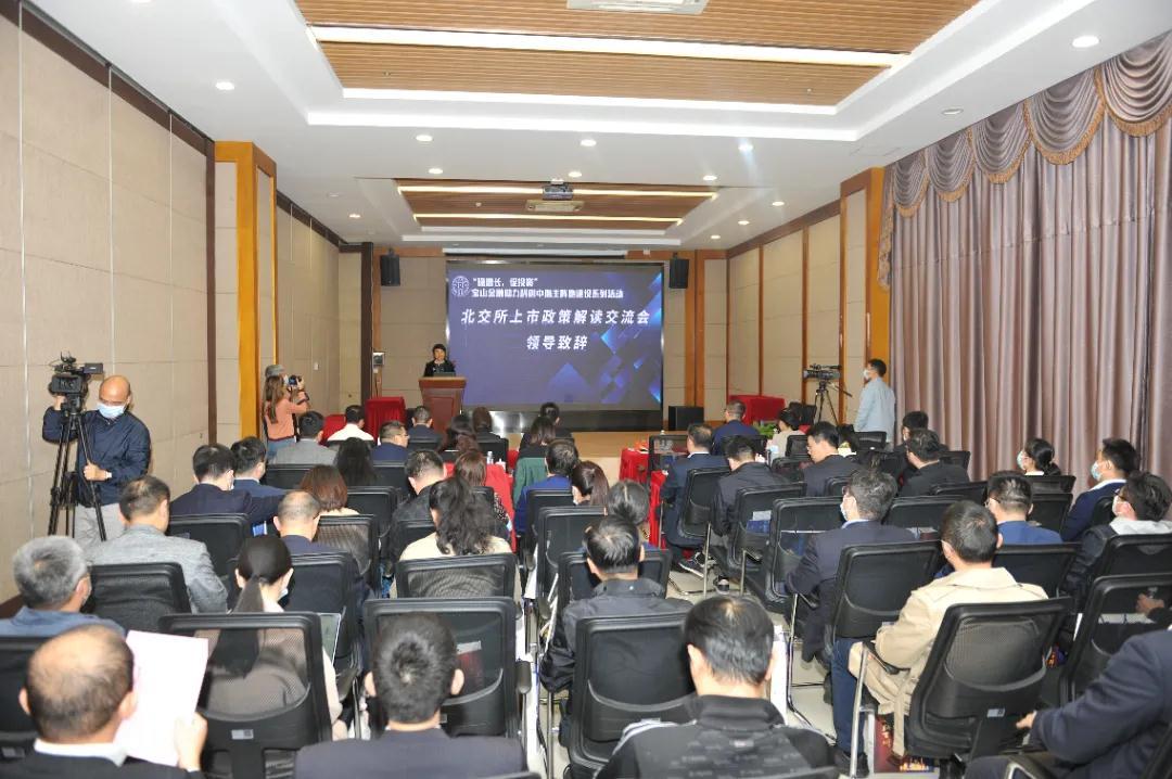 近日,区发改委(金融办)牵头区经委等共同召开“稳增长、促投资”宝山金融助力科创中心主阵地建设首场活动——北交所上市政策解读交流会,邀请北交所华东区专家,就近期热点开展解读指导,以“宝山金融讲堂”形式,“线下分享+线上直播”让区域内更多企业有获得感。