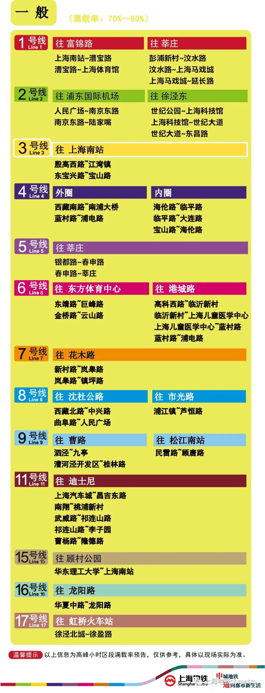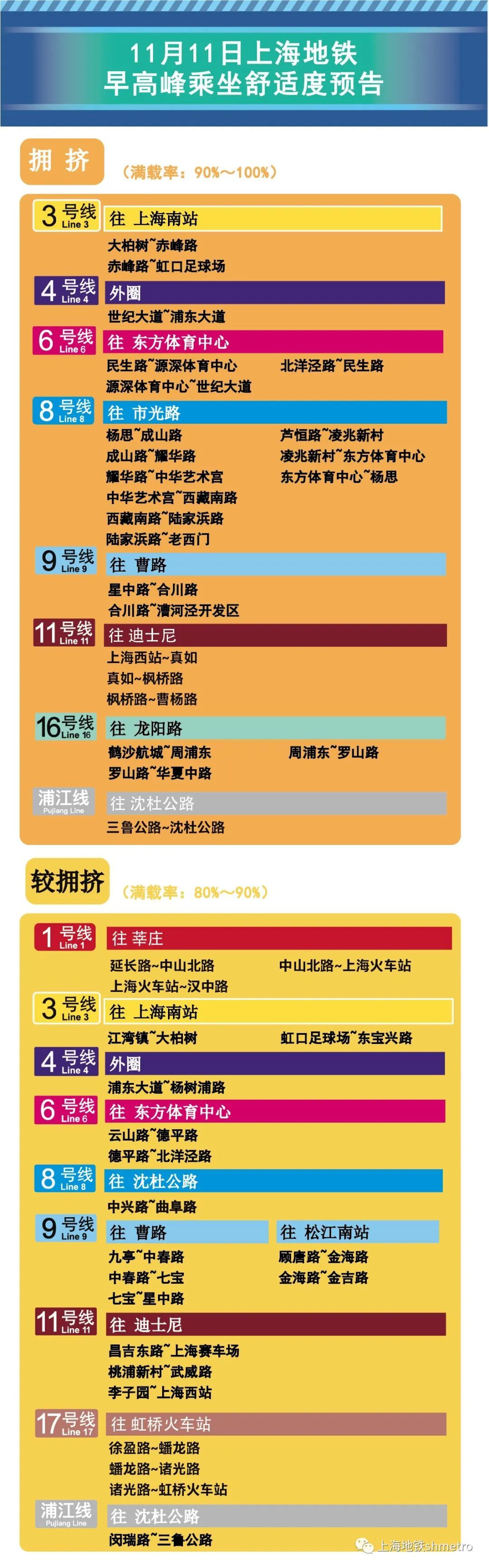 为提升上海地铁早高峰期间出行服务水平,提升乘客乘坐体验,上海地铁向乘客提供乘坐舒适度预告,方便乘客提前做好出行准备。
