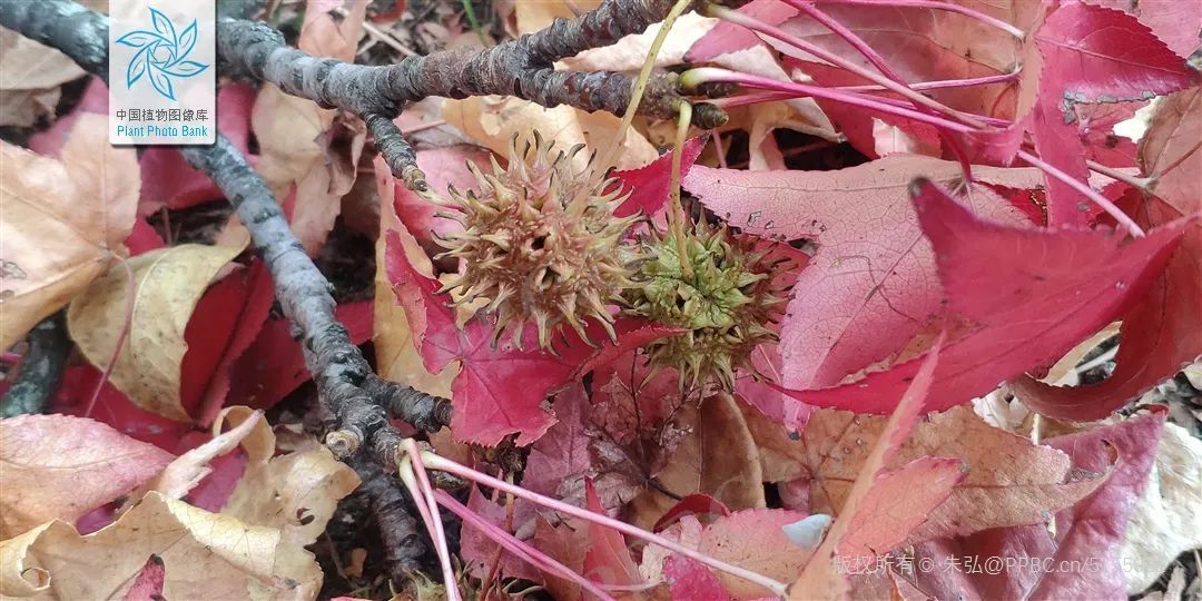 枫香和北美枫香为球形头状果序,蒴果下部藏于果序轴内。