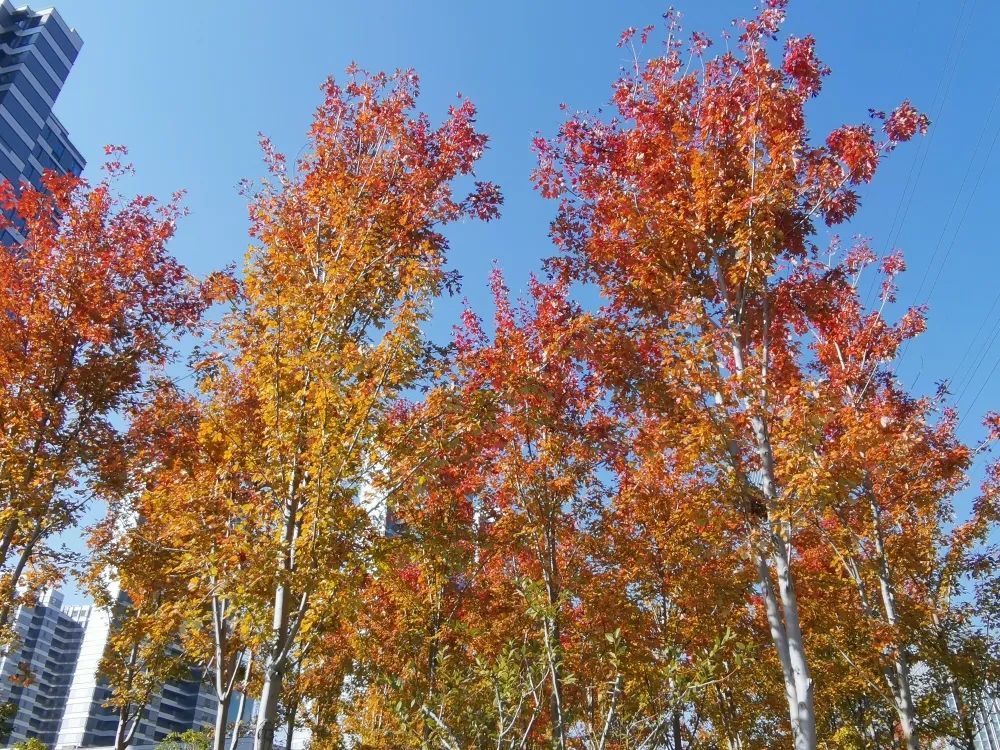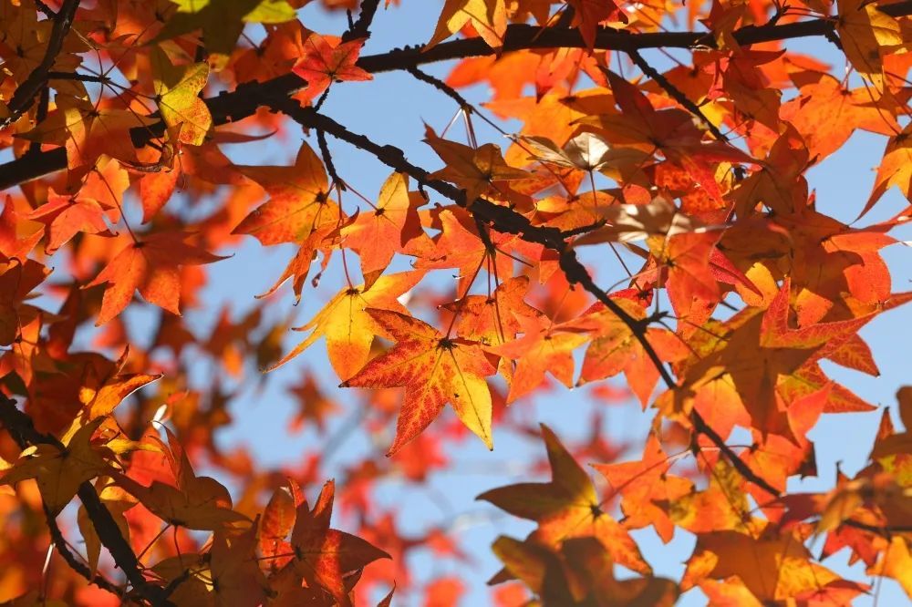 整体来看,枫香和三角枫叶片小而密,相对而言,北美枫香和美国红枫叶片大而稀疏。