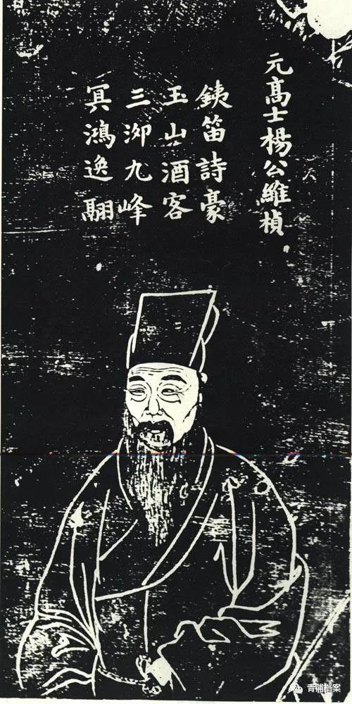 杨维桢(1296-1370年),字廉夫,号东维子,铁崖,晚号铁笛道人。诸暨(今浙江省诸暨市)人。元泰定间进士。曾任江西儒学提举,元末辞官,避居富春山,再徙居钱塘(今杭州)。张士诚据苏州,遂浪迹于三泖九峰间。青浦有南北杨家庄,北在凤溪,南在赵巷方家窑,相传均为杨维桢的隐居别业。诗文俊逸,独擅一时,人称“铁崖体”。又擅书法,草清劲可喜,矫健横发,如其为人。其乐府被赞誉为“出入少陵、二李间”。卒年75。著有《东维子集》《铁崖先生乐府》《春秋合题著说》《史义拾遗》等。