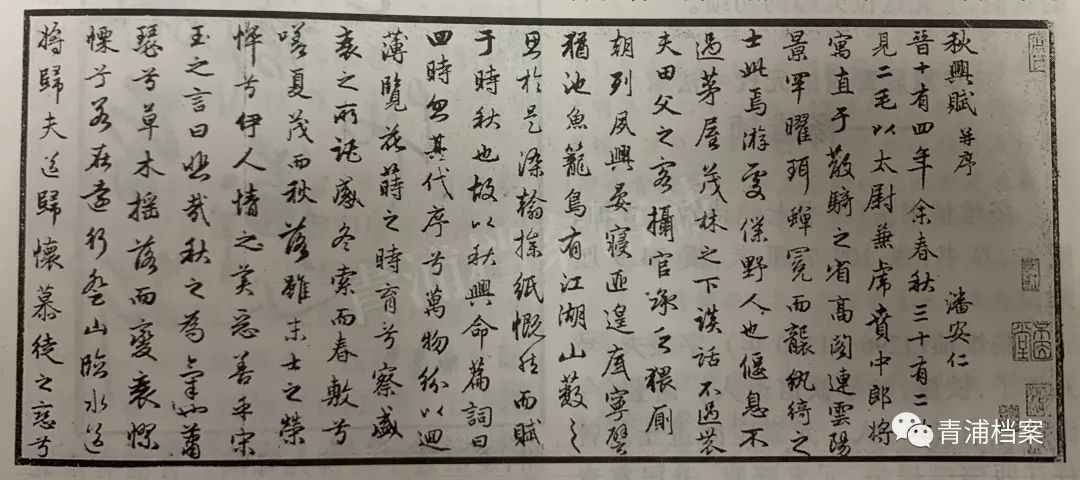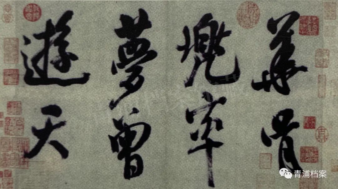 在这些千年遗珍中,令人惊喜的是竟有元代青浦人任仁发的一幅绘画作品,有三幅是青浦女婿赵孟頫的书画作品,有一幅是晚年寓居青浦的杨维桢的书法作品,还有一幅是在青浦做过官(即青龙镇镇监)的宋代书画家米芾的书法作品。72件稀世珍宝中,和青浦有关系的作者有4人,其书画作品竟达六幅,真是难得,这是青浦人的骄傲。