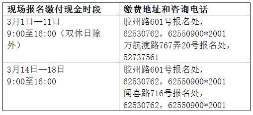 学员预约成功后,根据以下信息,携带本人身份证原件,至报名处现场报名缴付现金,过时视为自动放弃。