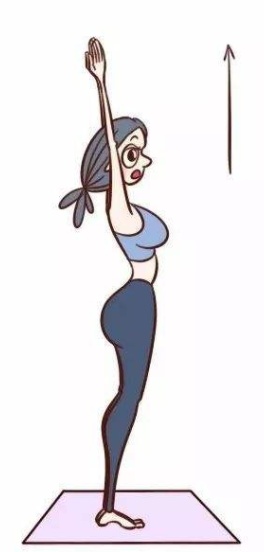 3. 双臂上拉:直立,双脚并拢,全身收紧,双手自然上举后双臂交叉,手腕翻转使掌心相对合十。手臂内侧紧贴耳朵,身体微微下沉,吸气,脚趾抓地,身体尽量向后伸展。每次保持10-15秒。