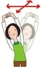 5. 活动肩颈部:双手臂向上举起,身体向左或向右侧弯,或者双手向后打开,让肩颈部的关节肌肉运动起来。