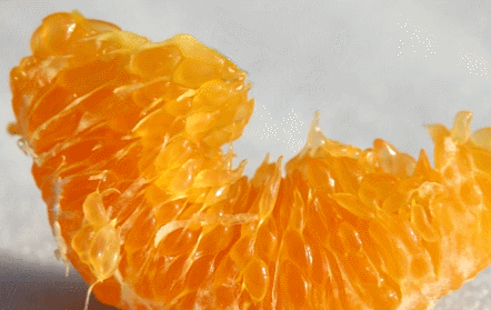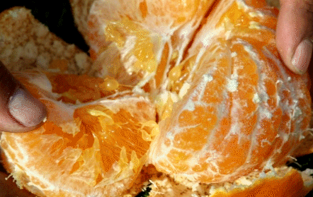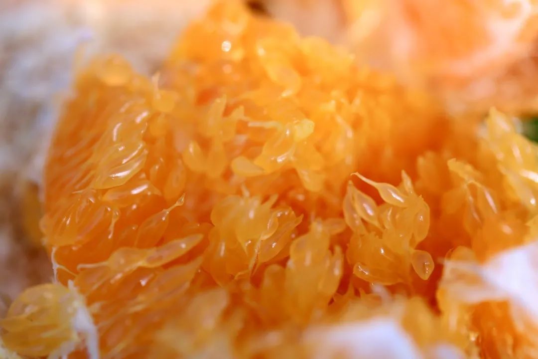 成熟的“甘平”,外观呈扁平状,果皮色泽橙红。剥开薄薄的果皮,果肉饱满细腻、香气浓郁。