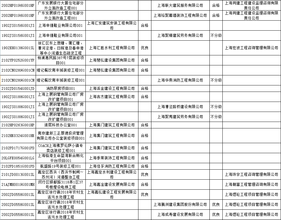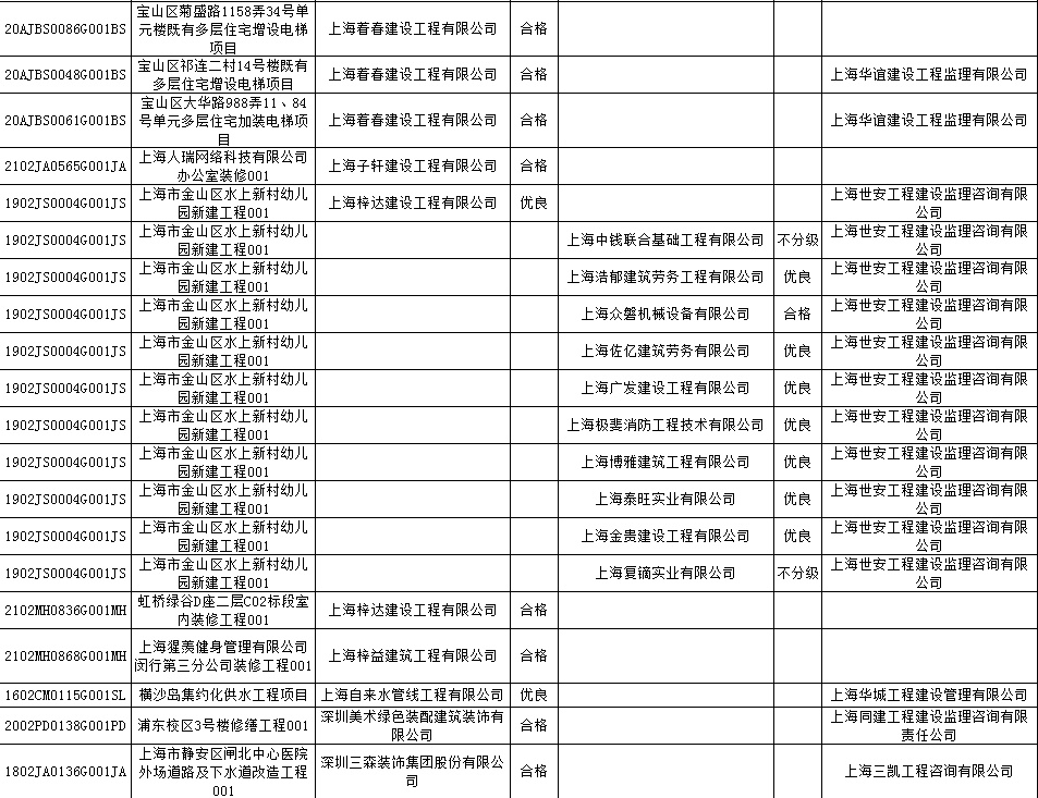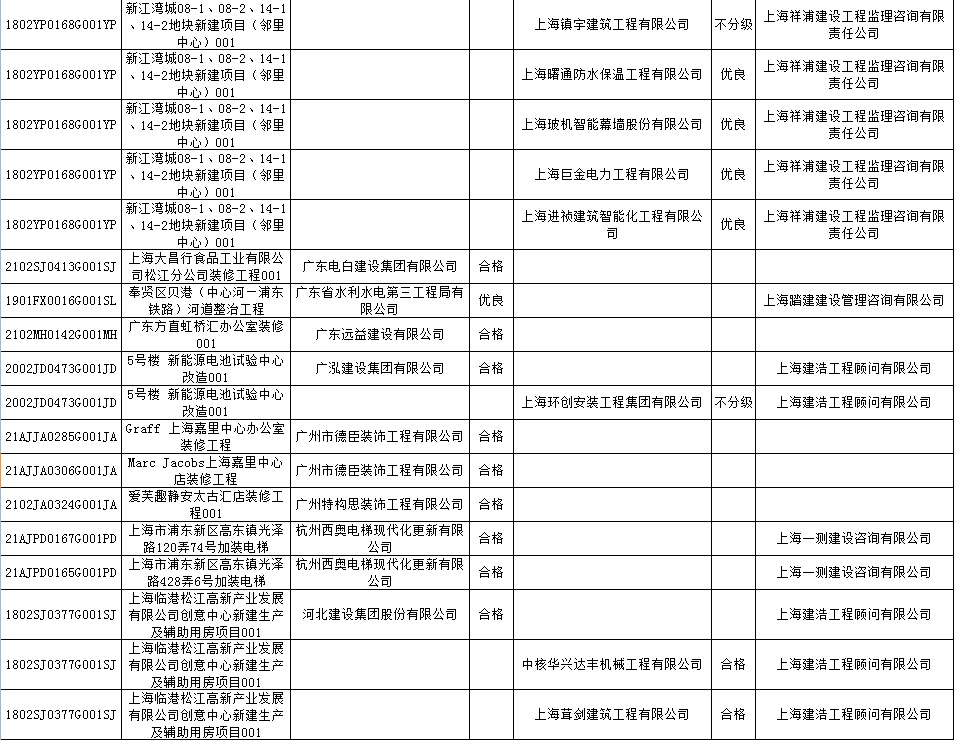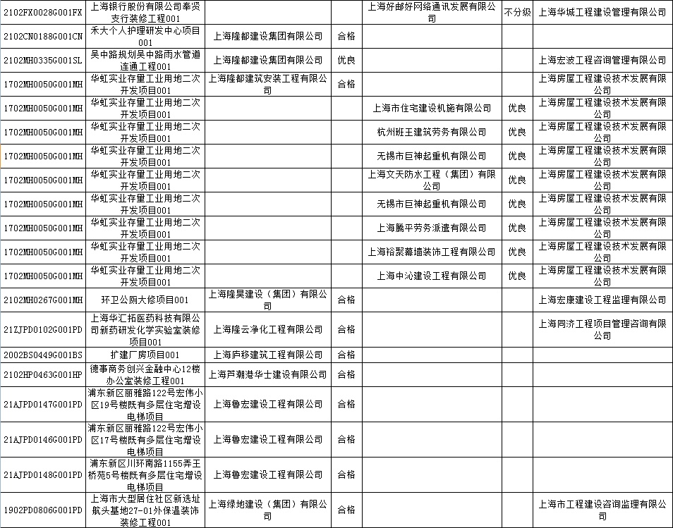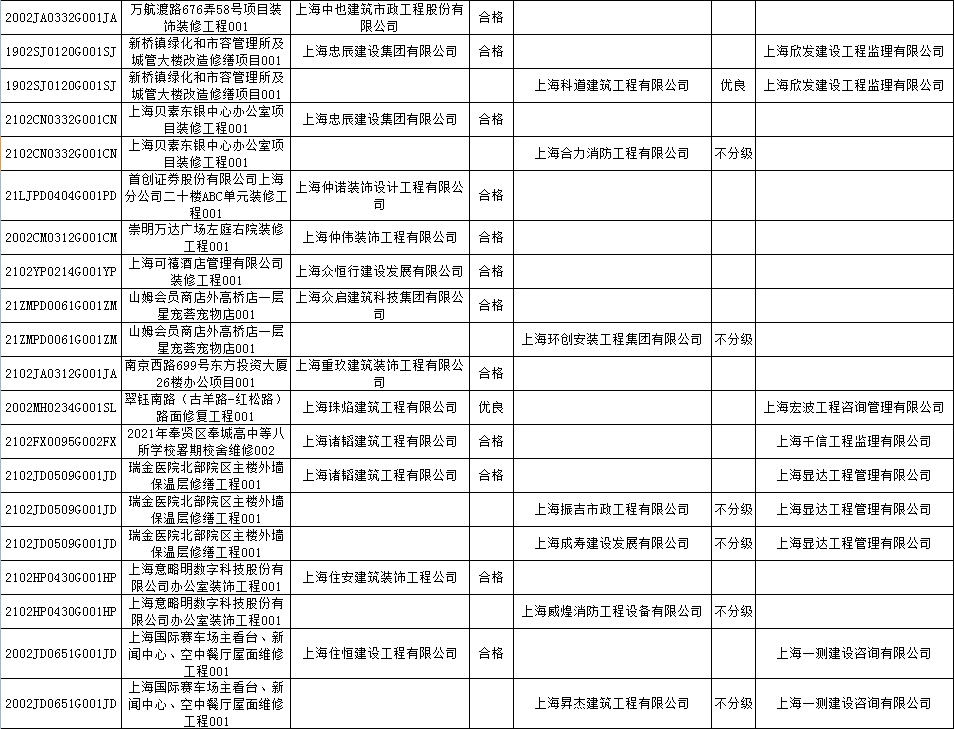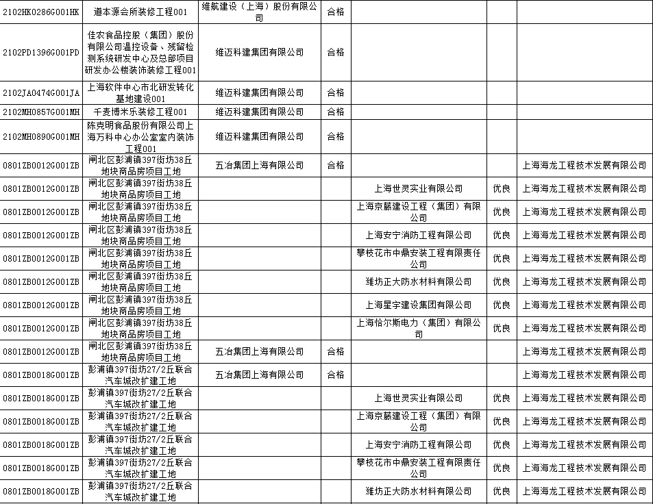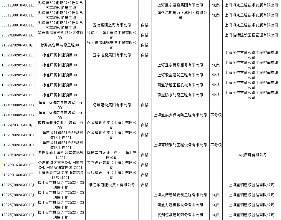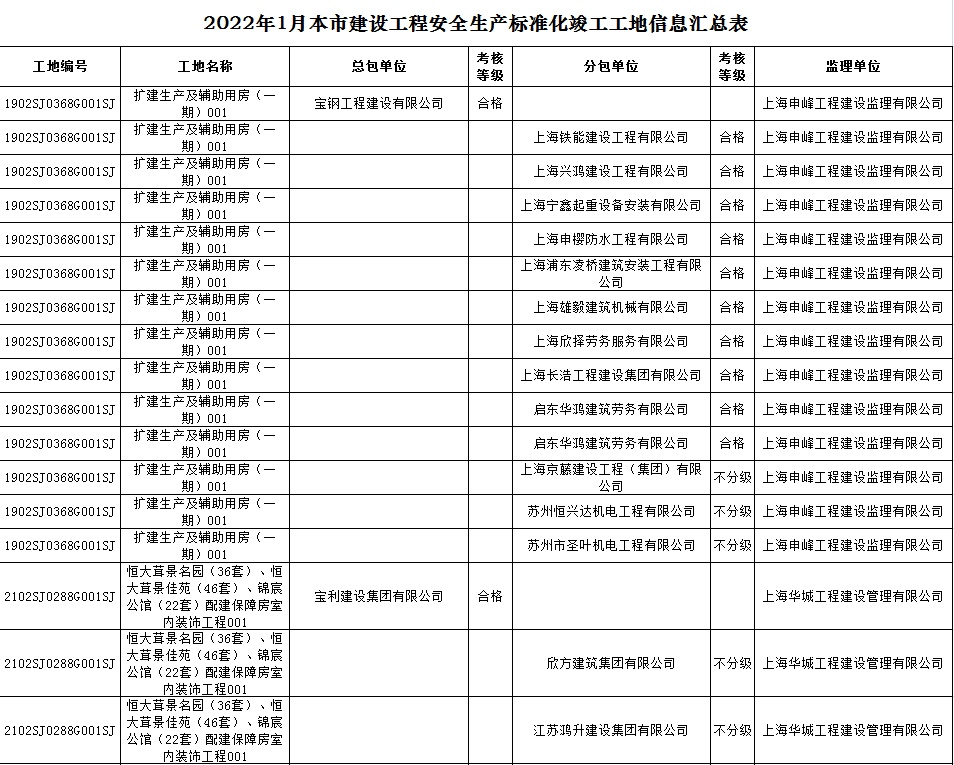 根据市住房城乡建设管理委印发的《上海市建筑施工安全生产标准化考评规范》,市建设工程安全质量监督总站对2022年1月份本市建设工程安全生产标准化考评结果进行公示。