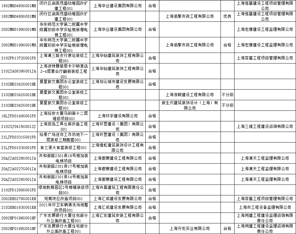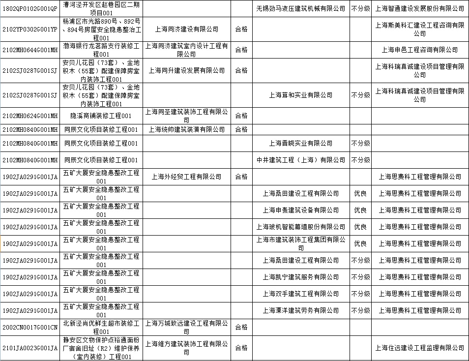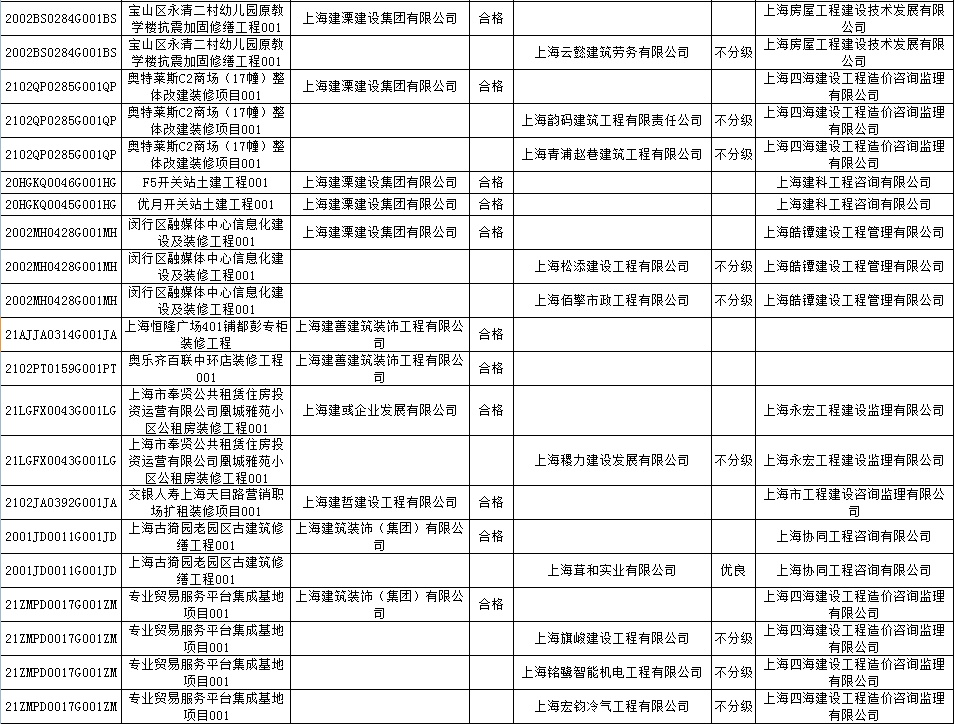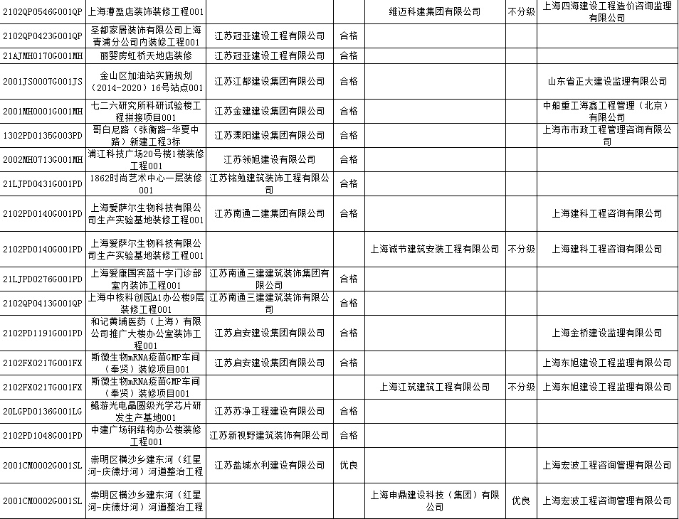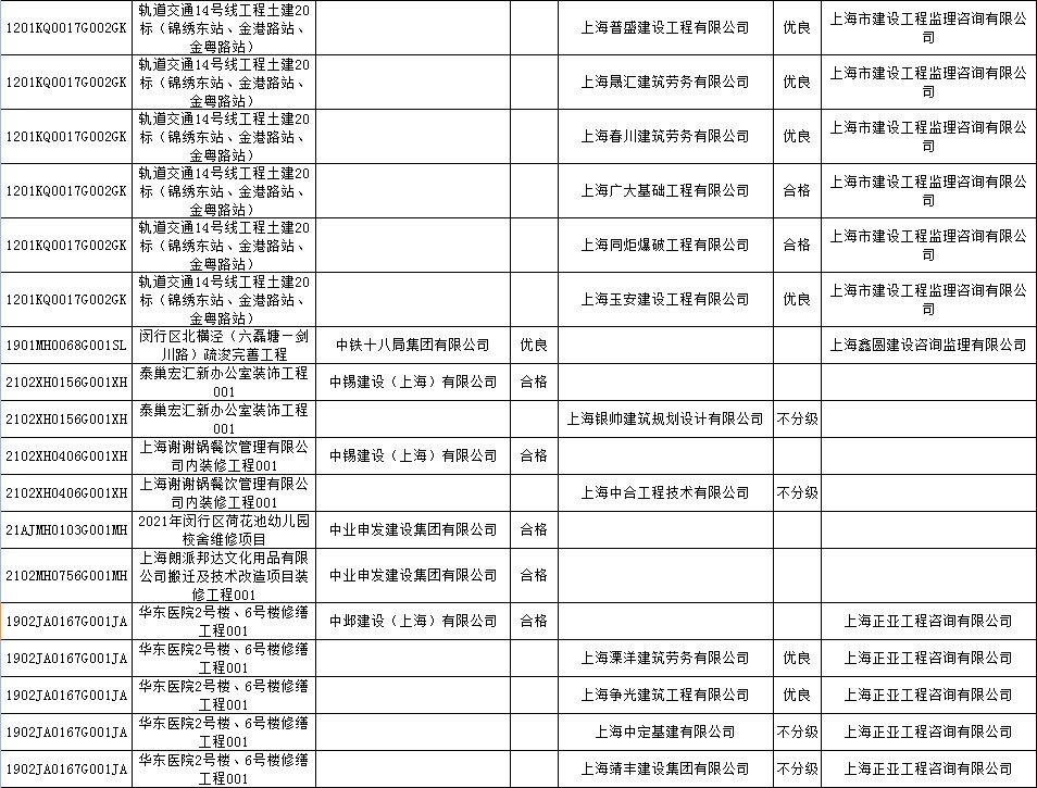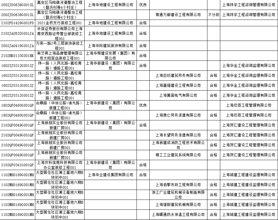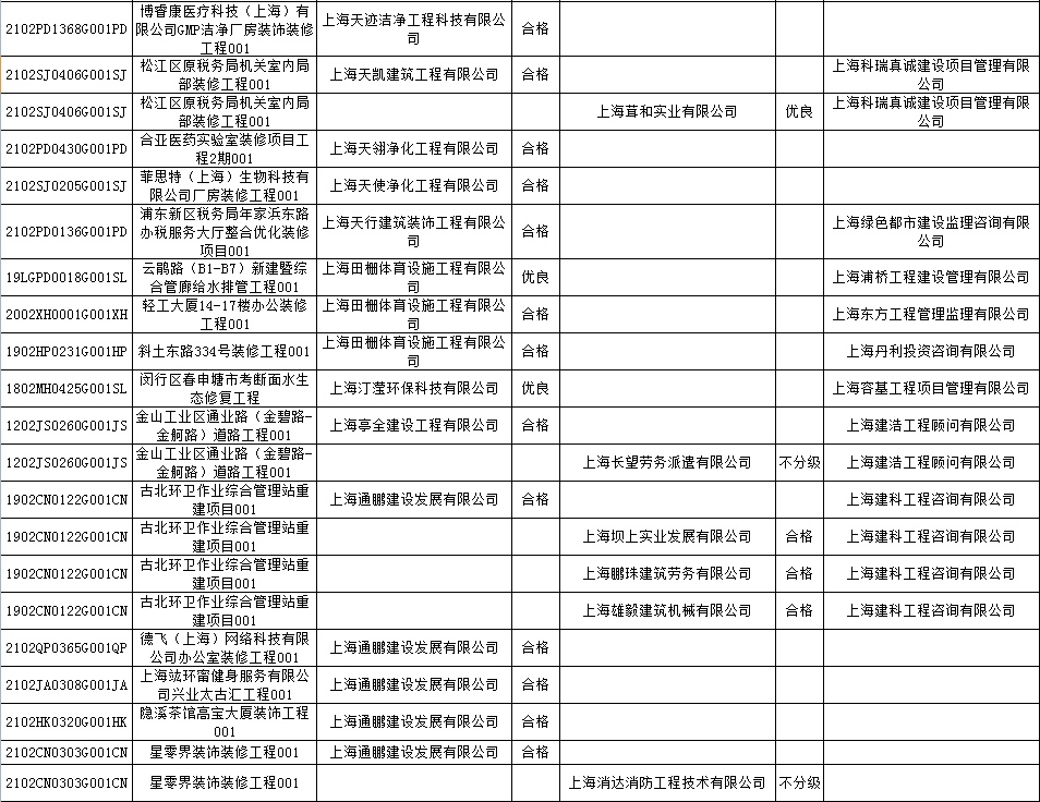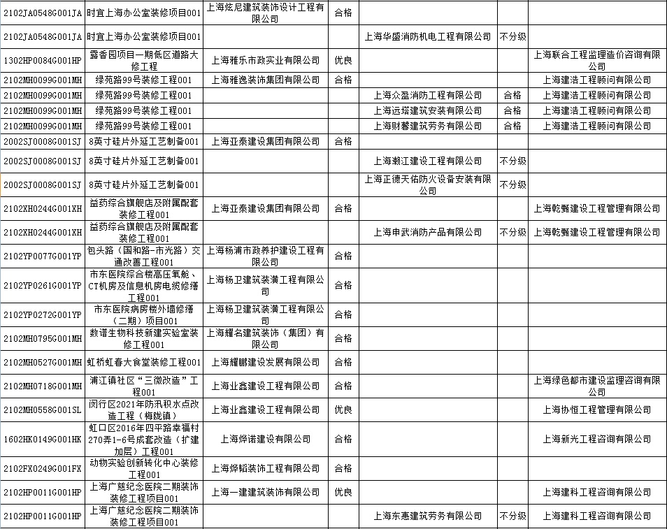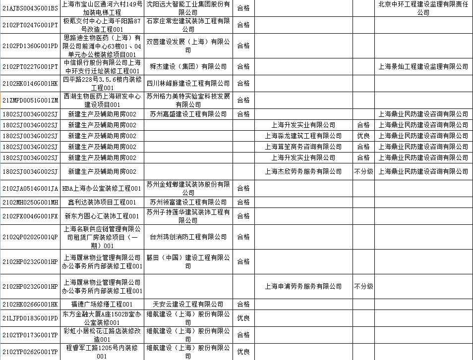 根据市住房城乡建设管理委印发的《上海市建筑施工安全生产标准化考评规范》,市建设工程安全质量监督总站对2022年1月份本市建设工程安全生产标准化考评结果进行公示。