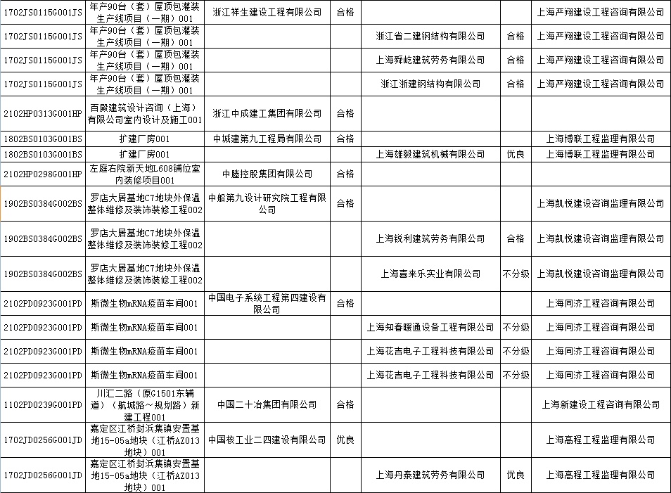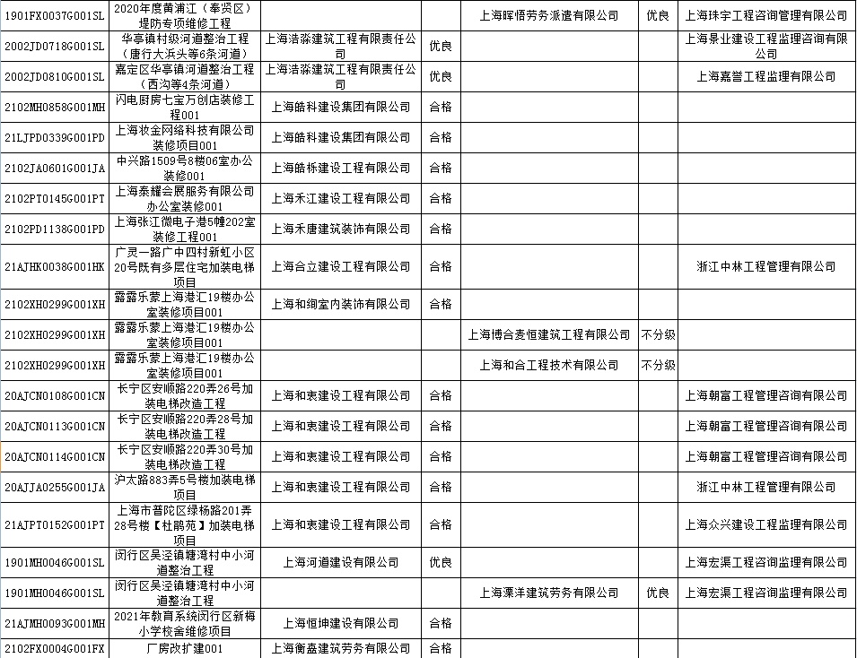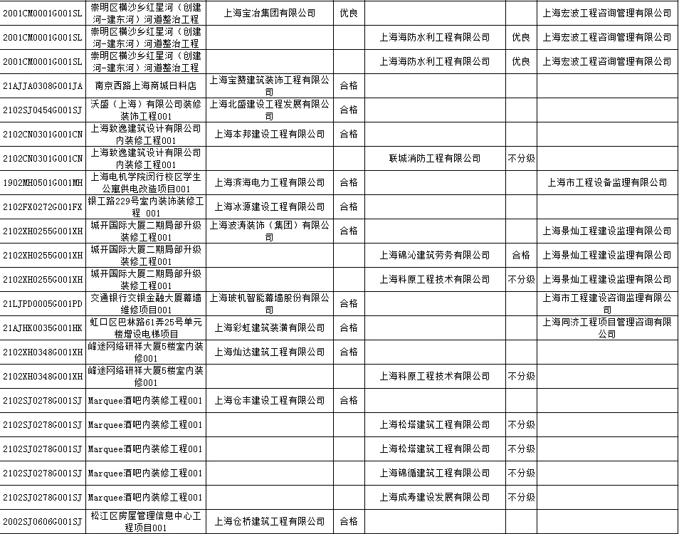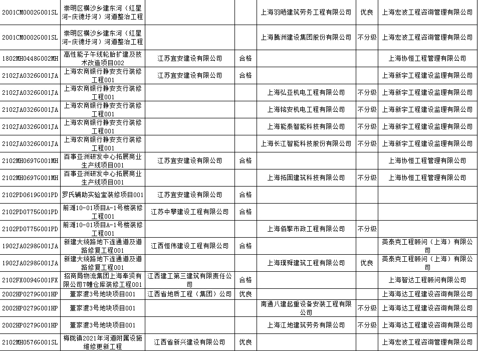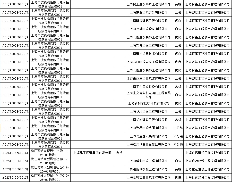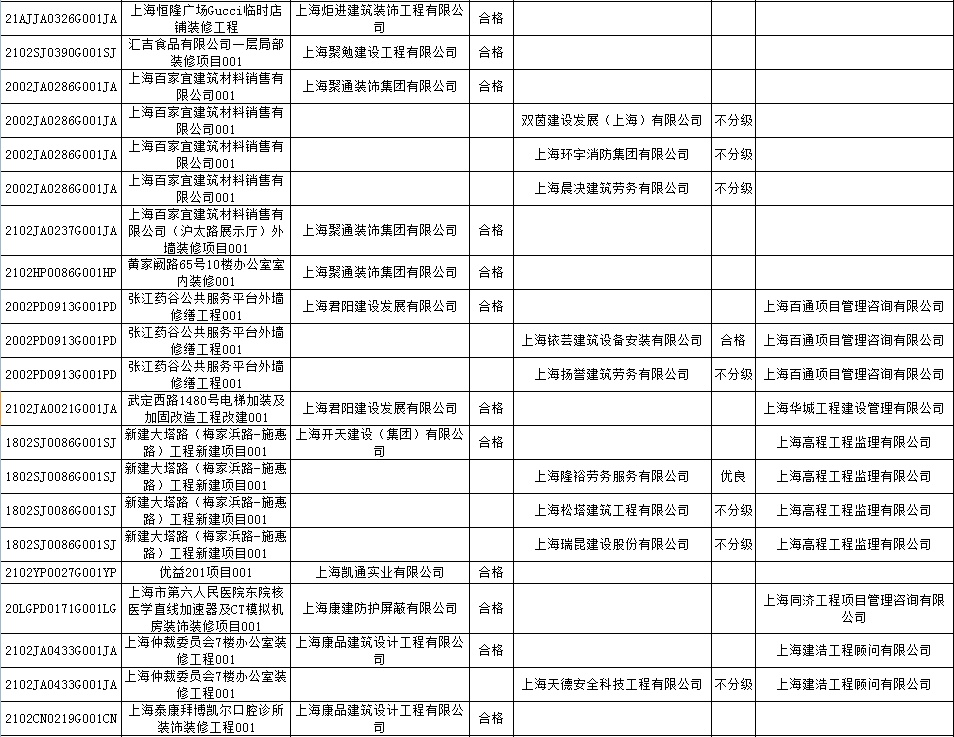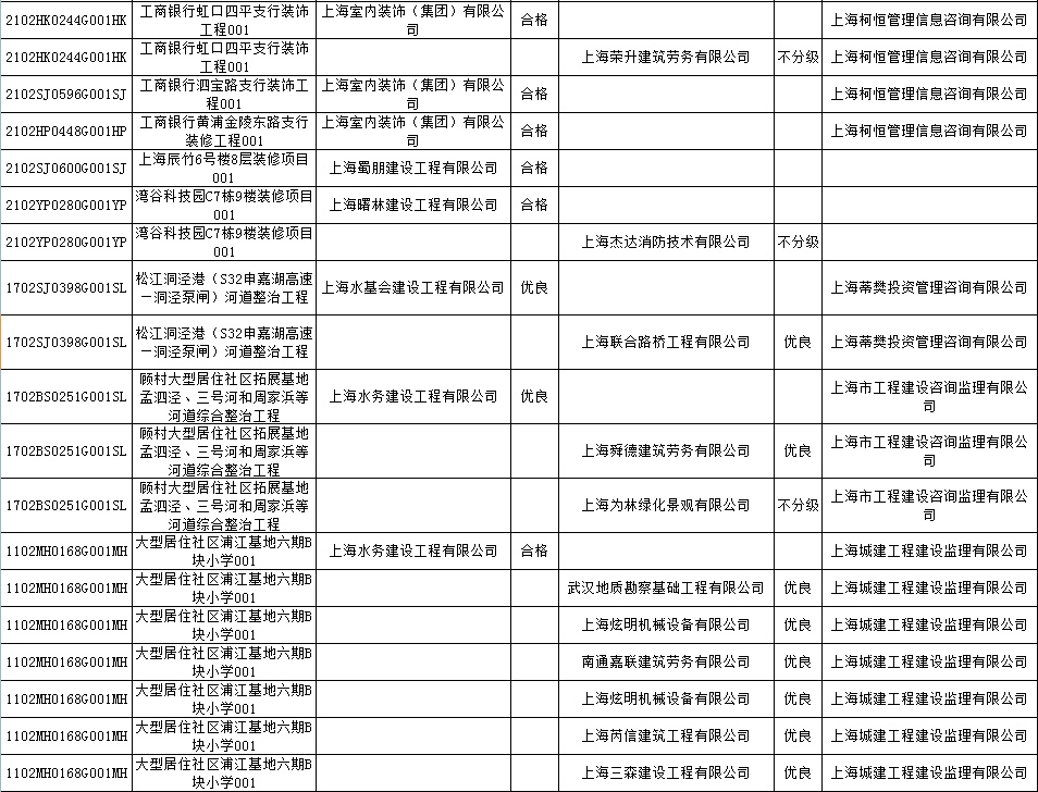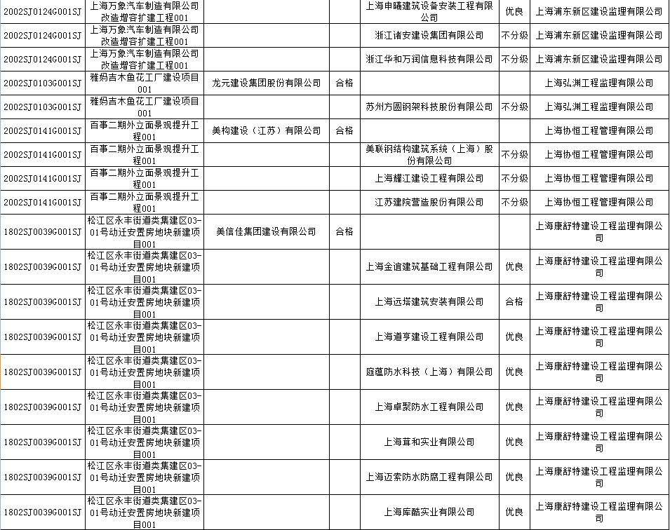 根据市住房城乡建设管理委印发的《上海市建筑施工安全生产标准化考评规范》,市建设工程安全质量监督总站对2022年1月份本市建设工程安全生产标准化考评结果进行公示。