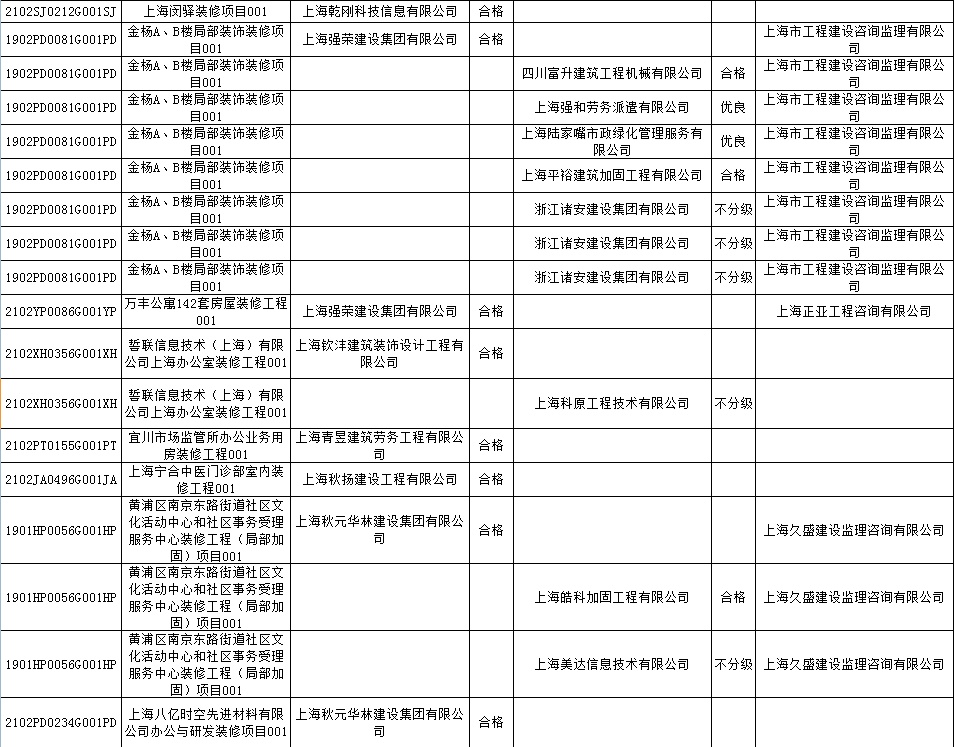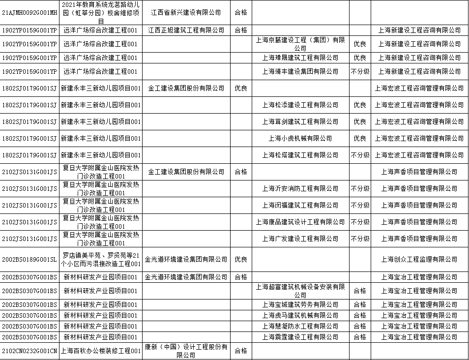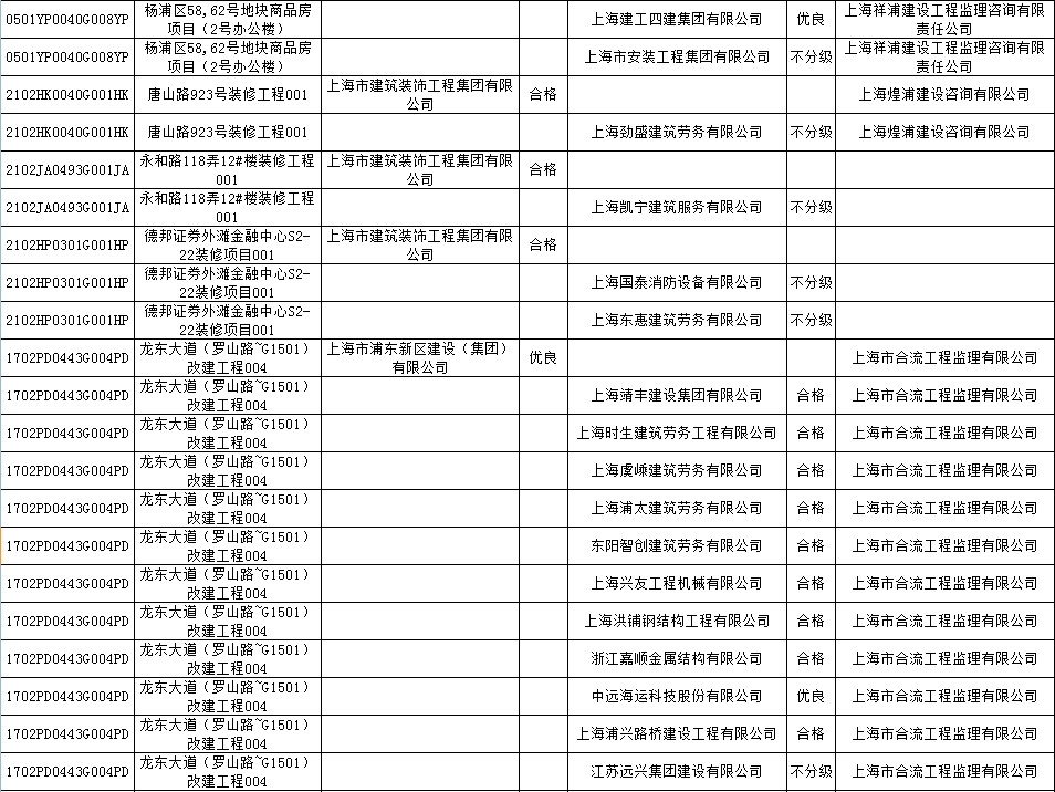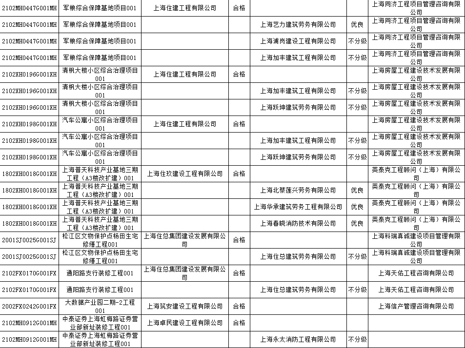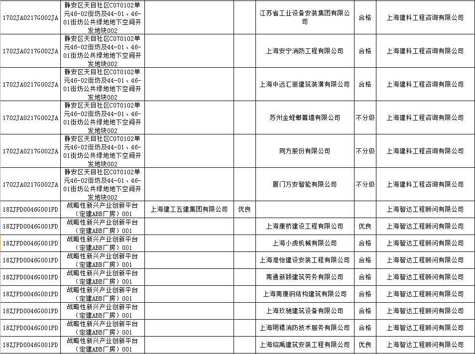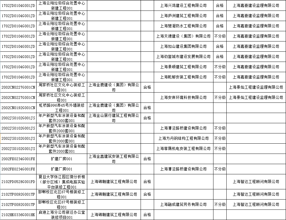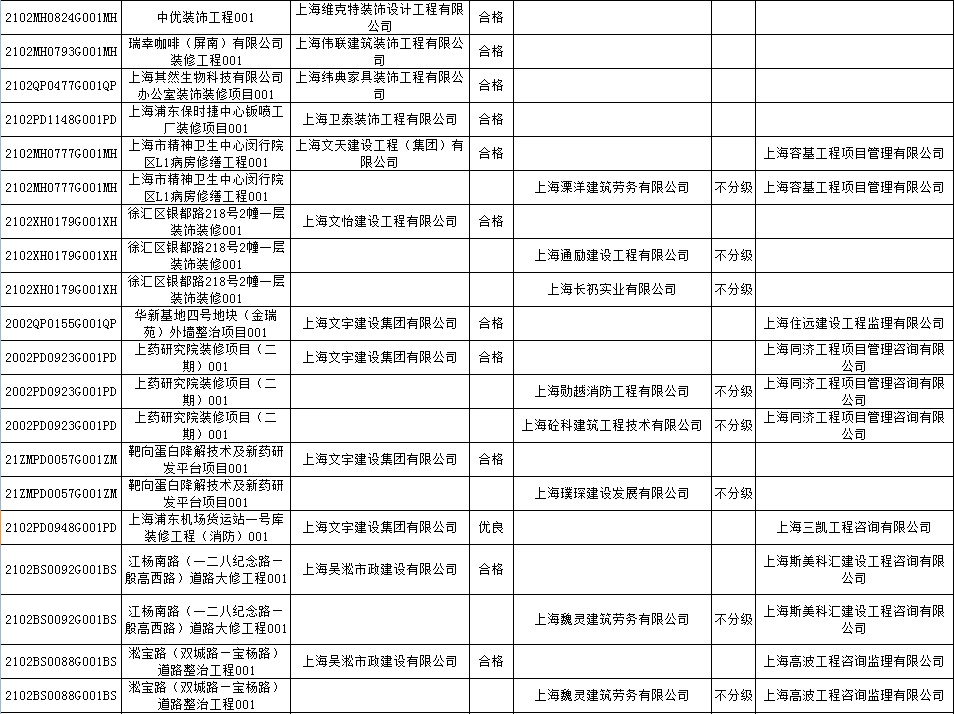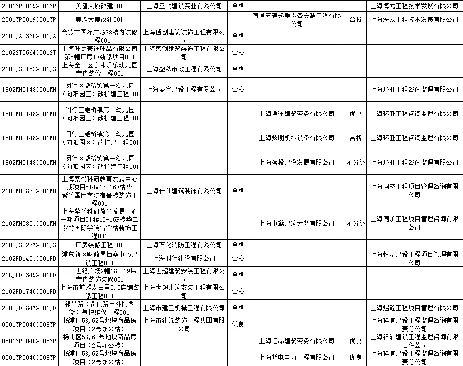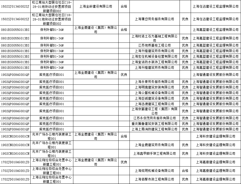 根据市住房城乡建设管理委印发的《上海市建筑施工安全生产标准化考评规范》,市建设工程安全质量监督总站对2022年1月份本市建设工程安全生产标准化考评结果进行公示。